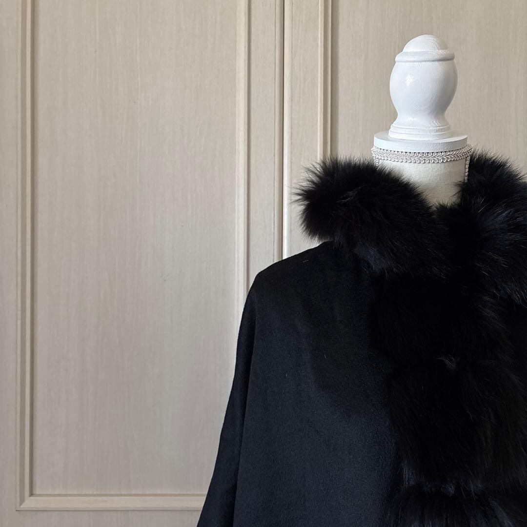 8 SAGAFUR ポンチョ ファー サガファー 羽織 アウター 黒 カシミヤ poncho fur お呼ばれ デート オフィスカジュアル 食事会 冠婚葬祭