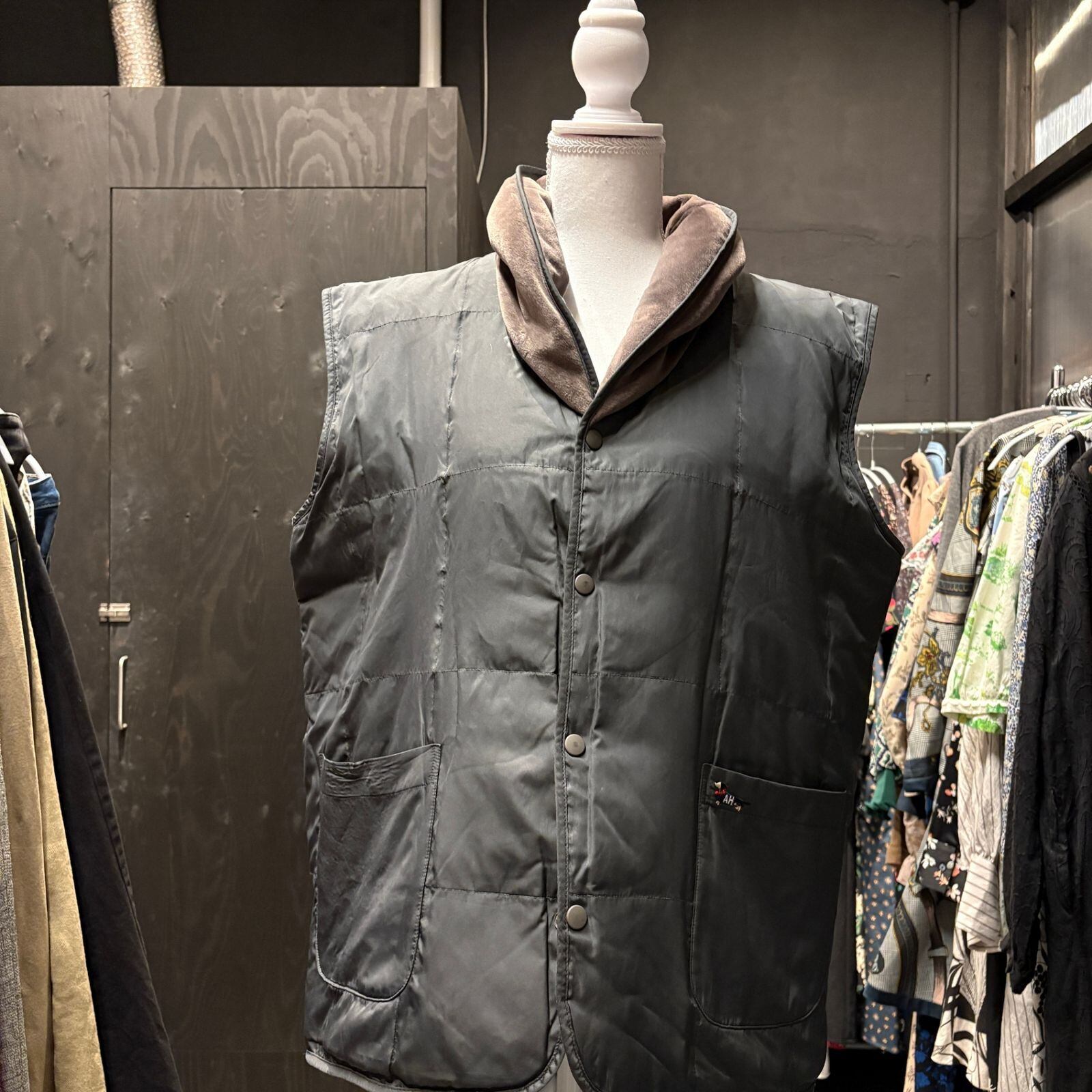 @ men's メンズ AH 刺繡 チェック リバーシブル ダウンジャケット DOWN ダウン 羽毛 jacket ジャケット outer アウター 荒川アムール 高級 紳士 服 古着 肌着