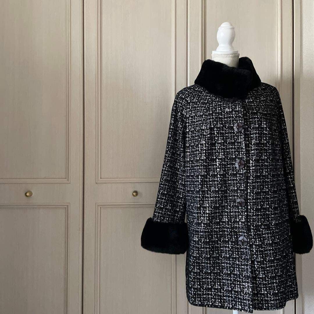 / リバーシブル 総柄 ファー fur コート ジャケット ボア エレガント 黒 お呼ばれ デート オフィスカジュアル 食事会 可愛い お出かけ 上品