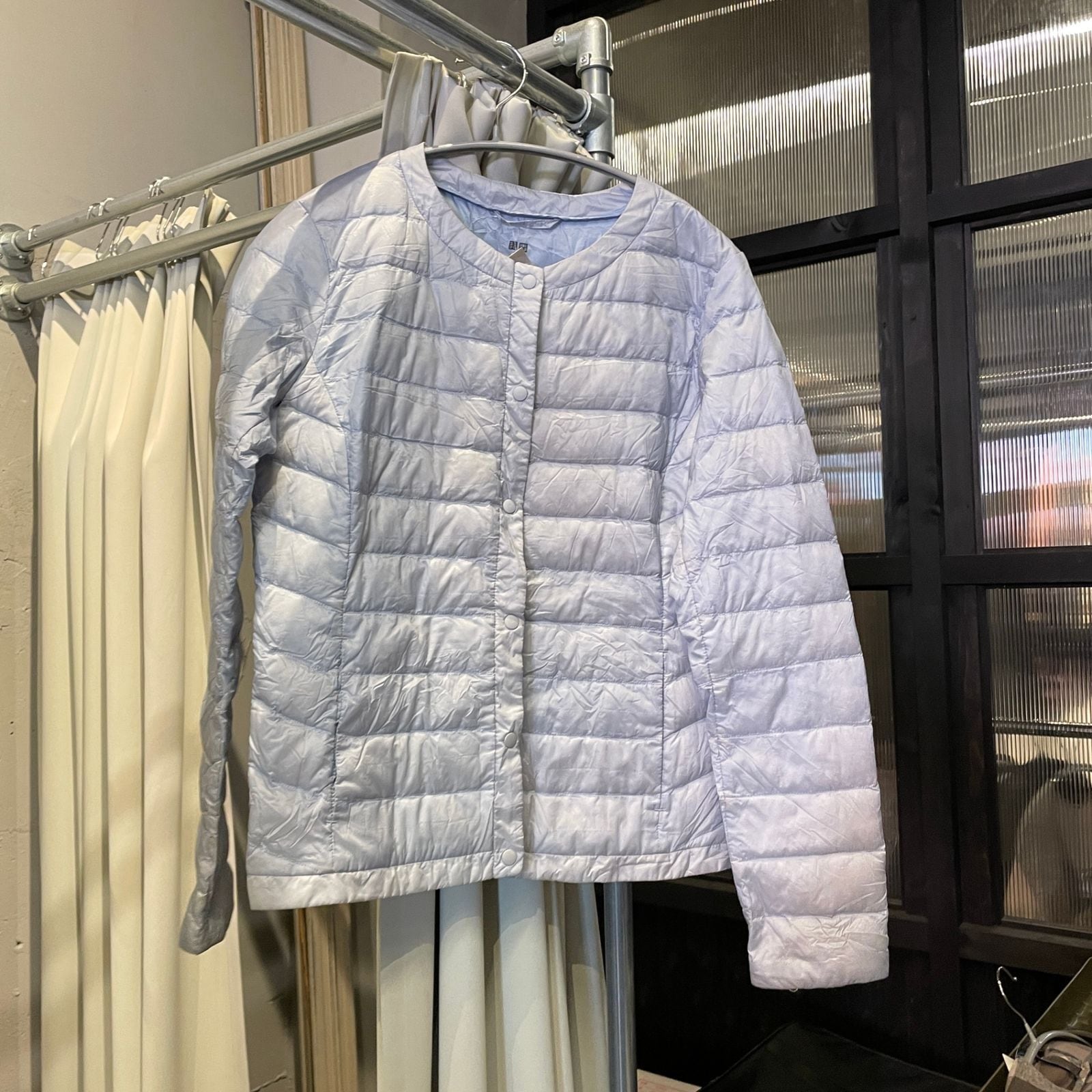 【東あずま店 併売品】 @ UNIQLO ユニクロ 水色 ダウン Mサイズ 38 9号 長袖 DOWN jacket ジャケット outer アウター