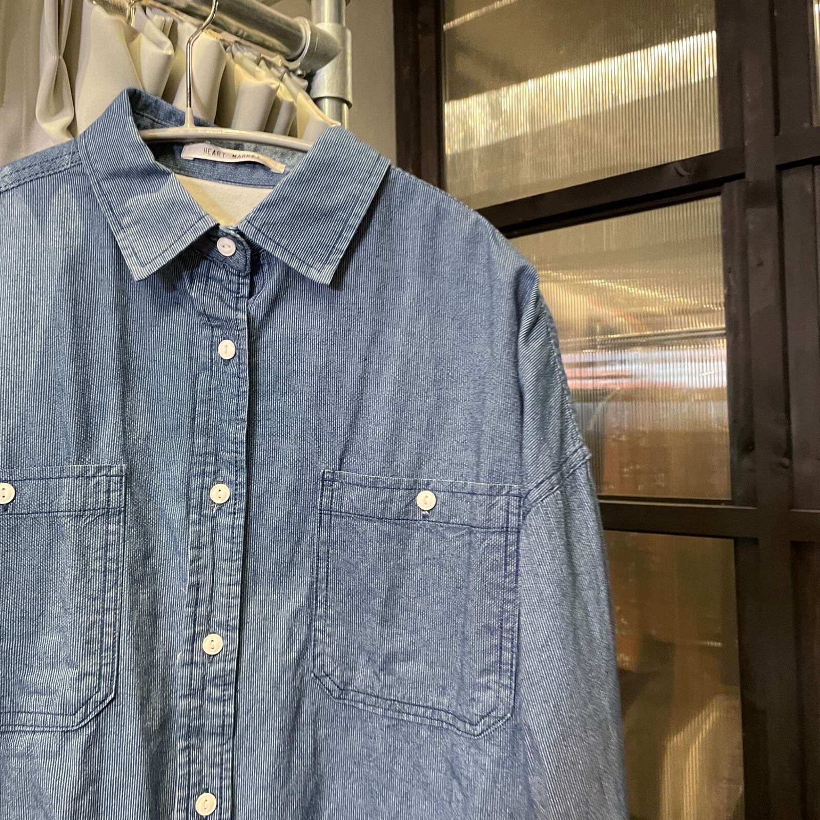 【東あずま店 併売品】 @ ハートマーケット Heart market 無地 長袖 タンガリー デニム denim お呼ばれ デート オフィスカジュアル 食事会 可愛い お出かけ 上品 ナチュラル