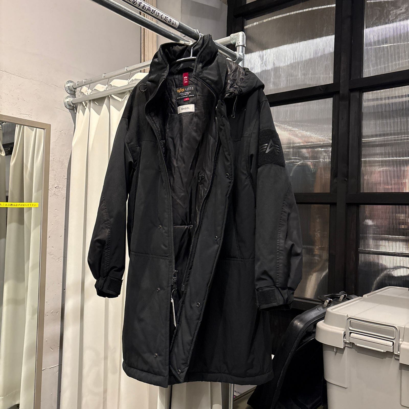 【東あずま店 併売品】 @ Snidel × ALPHA ロング モンスター パーカー スナイデル アルファインダストリー jacket coat 黒 ブラック BLACK クロ くろ