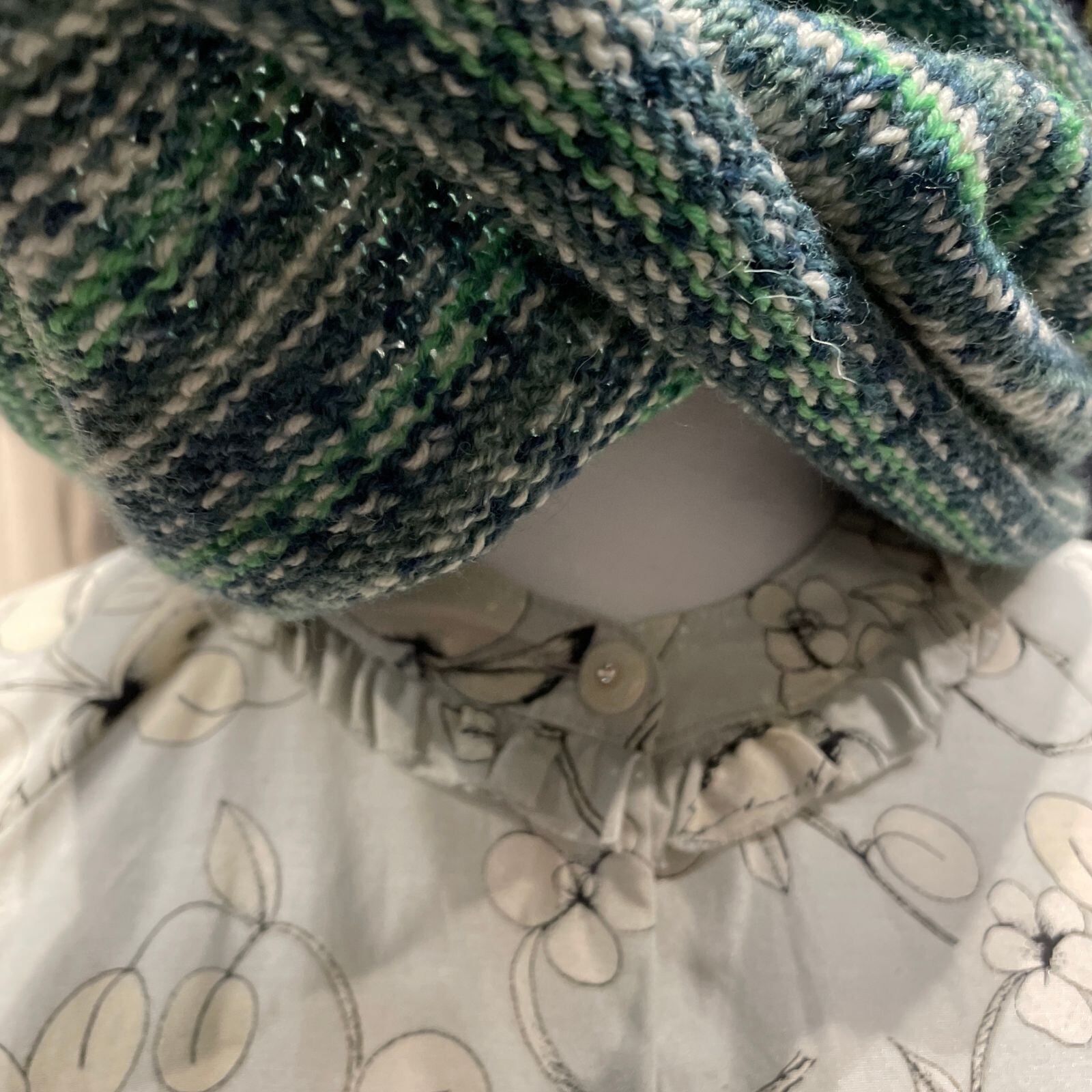 【東あずま店 併売品】 @ 手編み opal毛糸 WOOL ウール オパール ネックウォーマー 腹巻き 帽子 ねじり帽子 フード 緑 グリーン GREEN ミドリ 暖か 洗濯可能