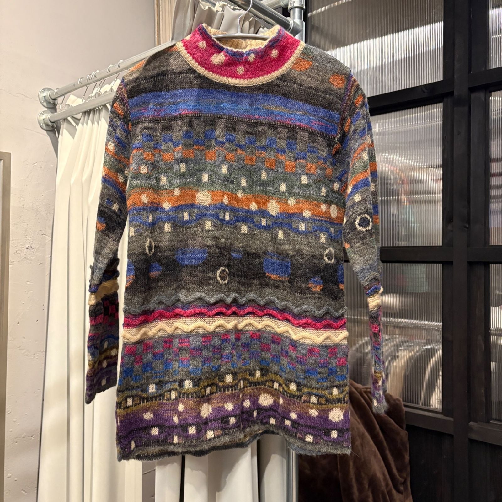 【東あずま店 併売品】 ニシノニット 総柄 ニット セーター トップス シャツ 長袖 ハイネック ドット 水玉 ナチュラル お呼ばれ デート オフィスカジュアル 食事会 可愛い お出かけ 上品