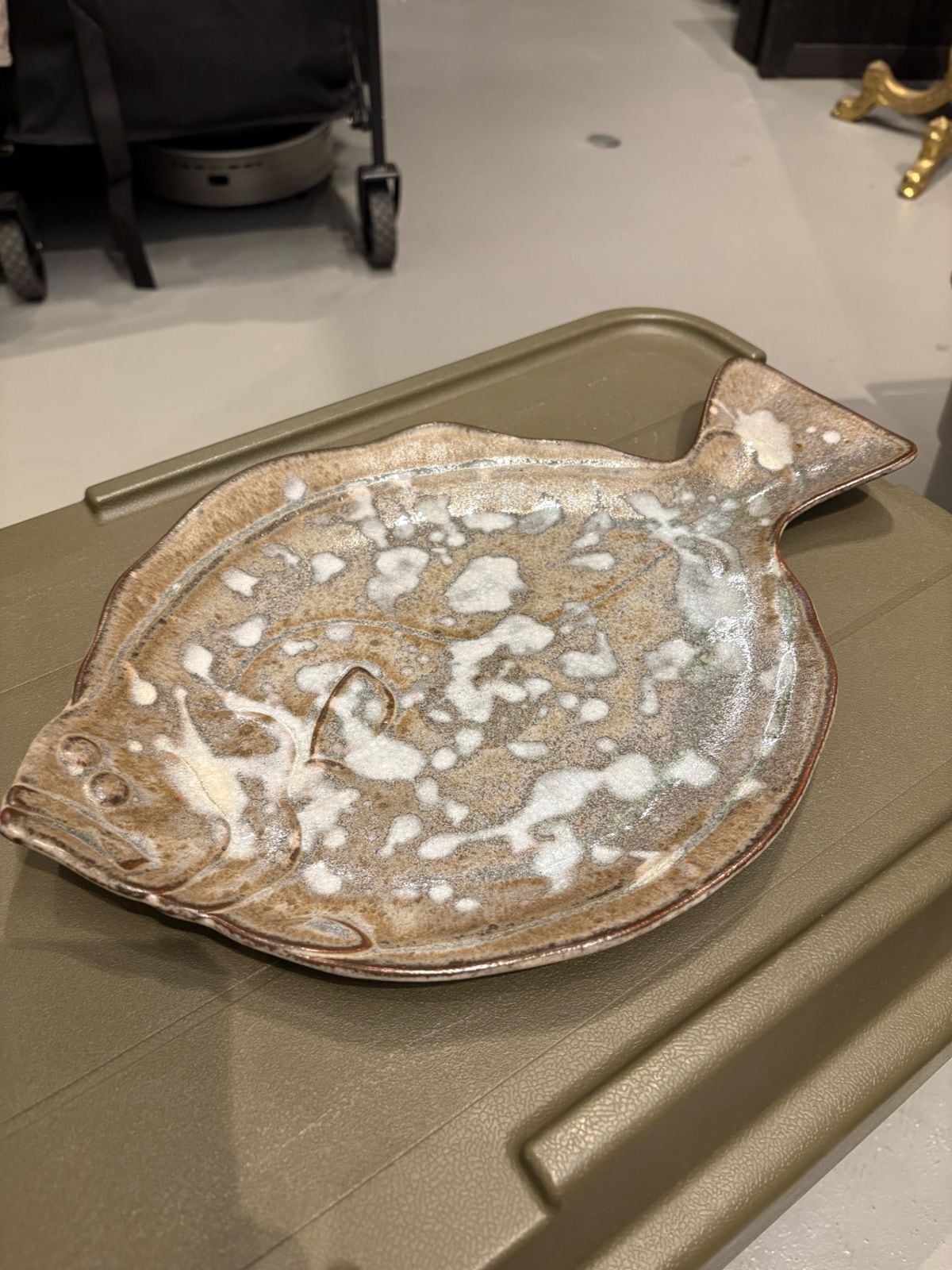【東あずま店 併売品】 ひらめ ヒラメ 平目 器 陶器 大皿 皿 刺身などの器として 果物などを乗せても