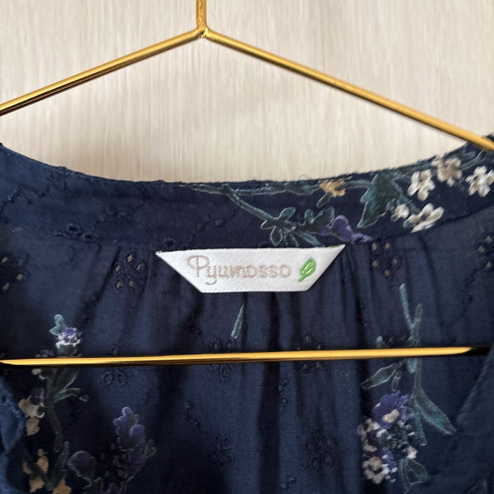 / Pyumosso 花柄 総柄 ワンピース ロング ブルー 青 藍色 ネイビー 紺色 BLUE NAVY ナチュラル お呼ばれ デート オフィスカジュアル 食事会 natural