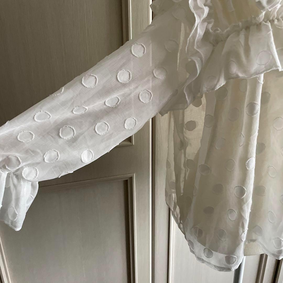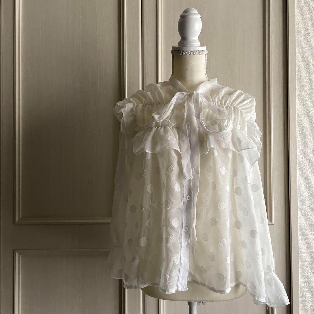 F ドット 水玉 ブラウス シャツ トップス シアー ボウタイ 透け感