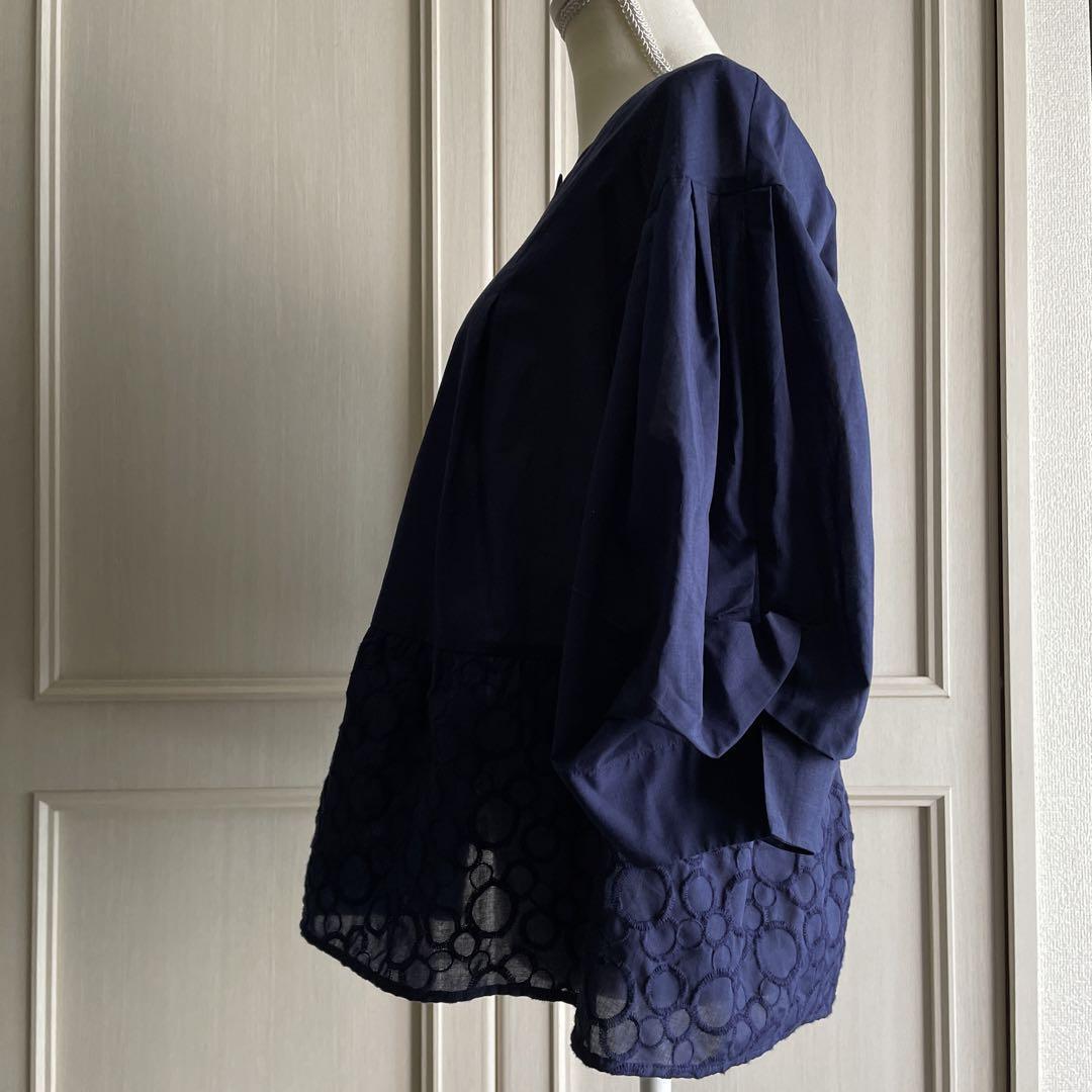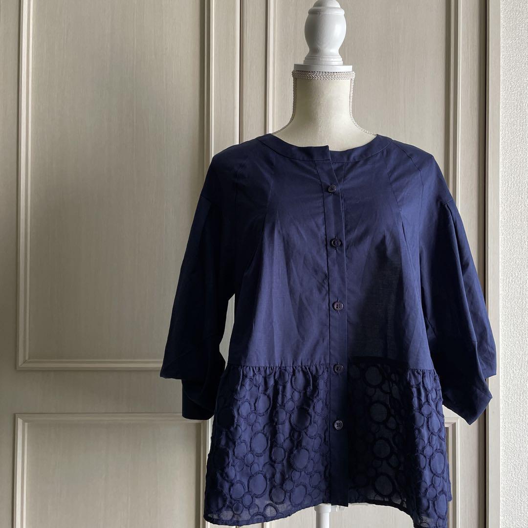G ハルメク 花柄 刺繍 ブラウス シャツ トップス ブルー ネイビー 紺