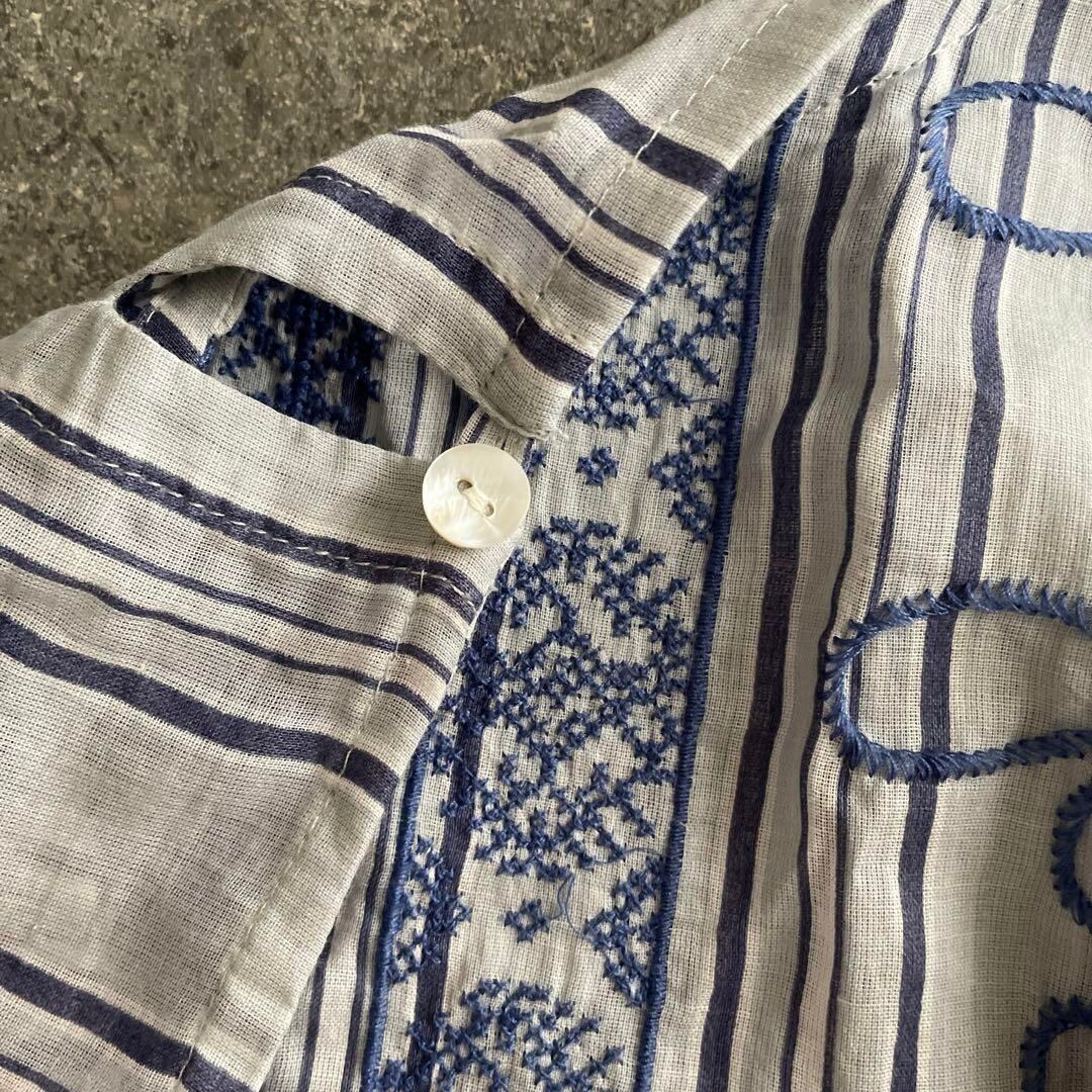 34 アルティプール artipur 花柄 ブラウス シャツ ストライプ 刺繍