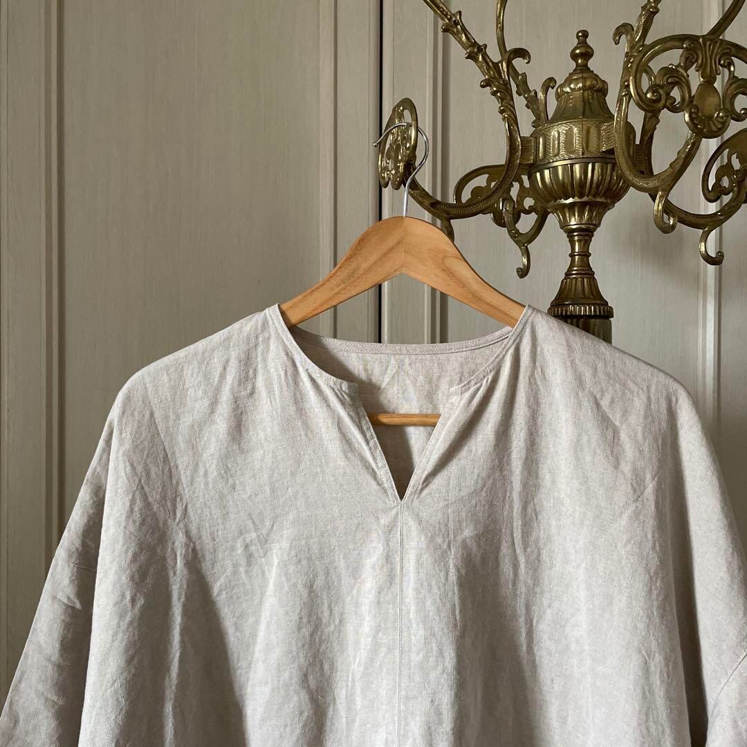 中川政七商店 リネン ロング ワンピース シャツ 無地 半袖 オーバーサイズ