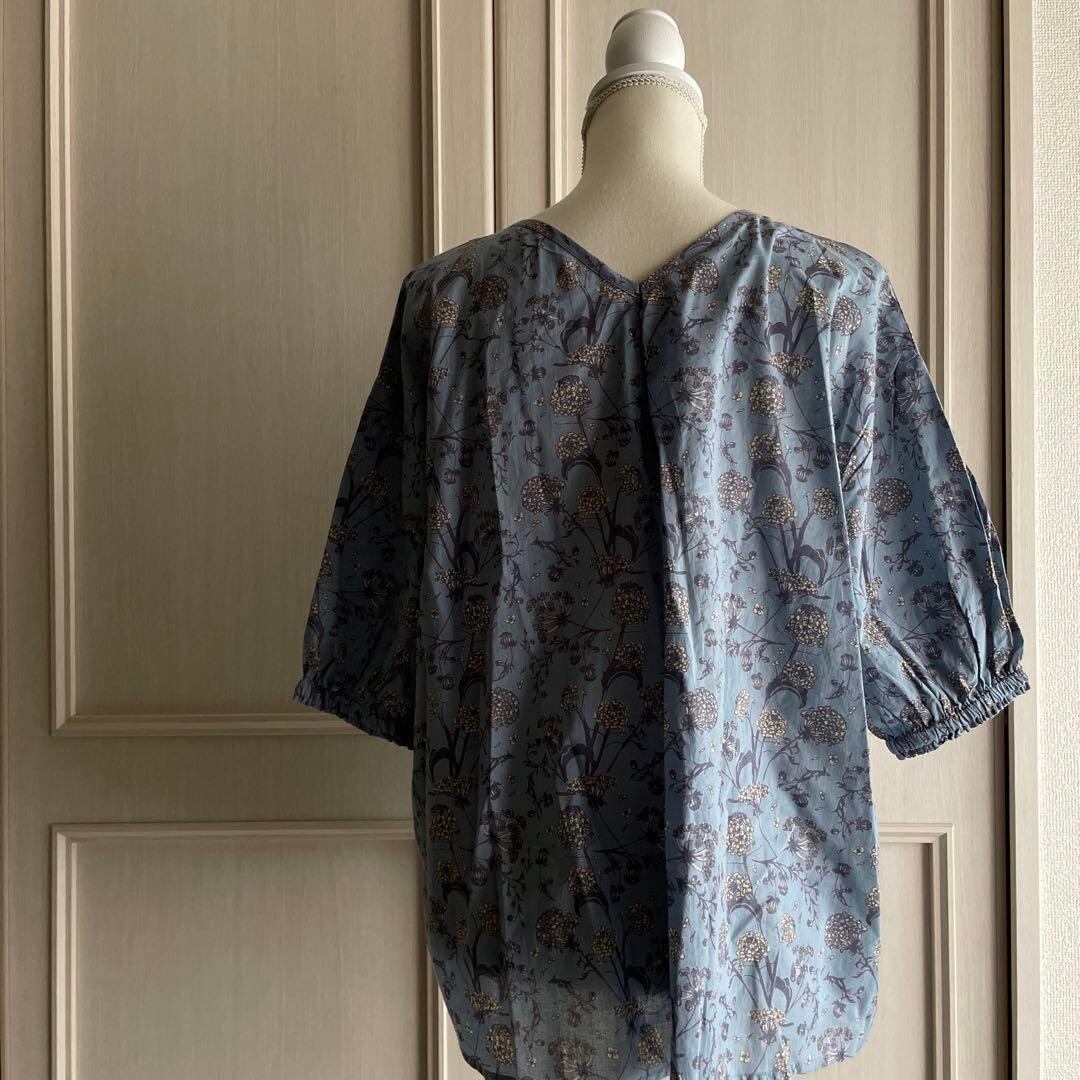 22 花柄 フラワー ブラウス シャツ 半袖 ナチュラル 半袖 ブルー 青