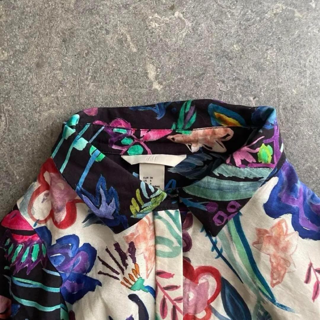 R H&M 花柄 フラワー ワンピース シャツ マキシ 総柄 ロング