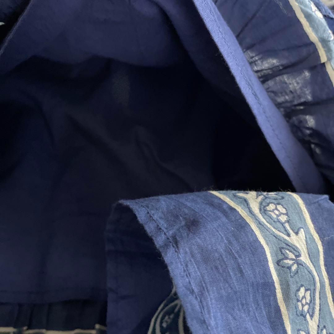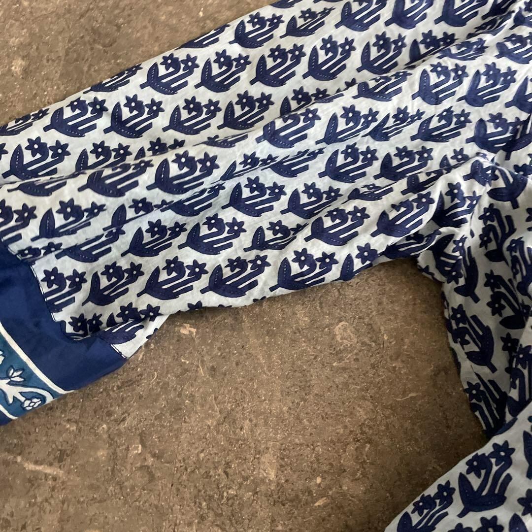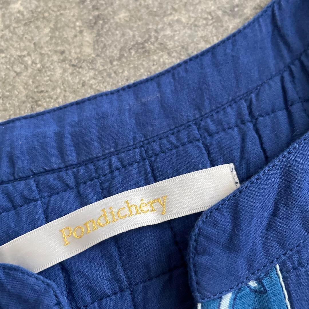 39 pondichery ワンピース 花柄 リボン 長袖 ブロックプリント