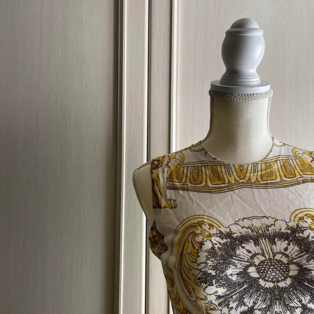 44 ヴェルサーチェ VERSACE 総柄 ノースリーブ トップス シャツ 黄