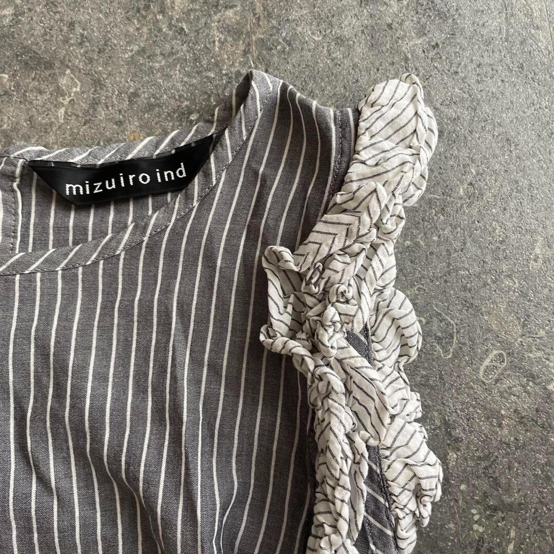 79 ミズイロインド mizuiroind フリル ストライプ ブラウス シャツ