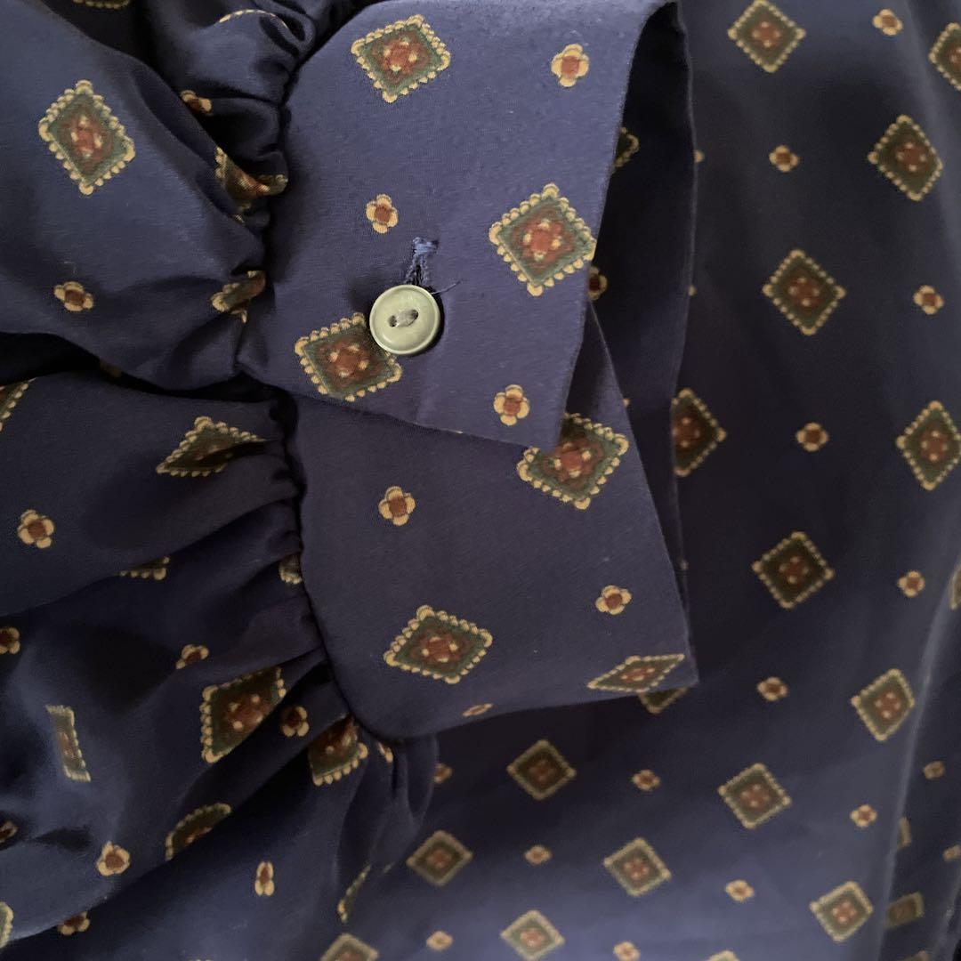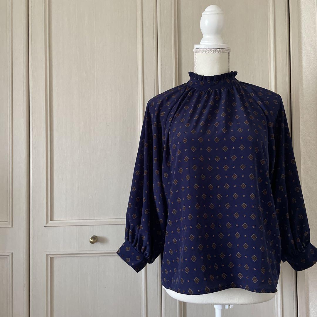 N ペイズリー 花柄 フラワー ブラウス シャツ トップス 長袖 ブルー 青