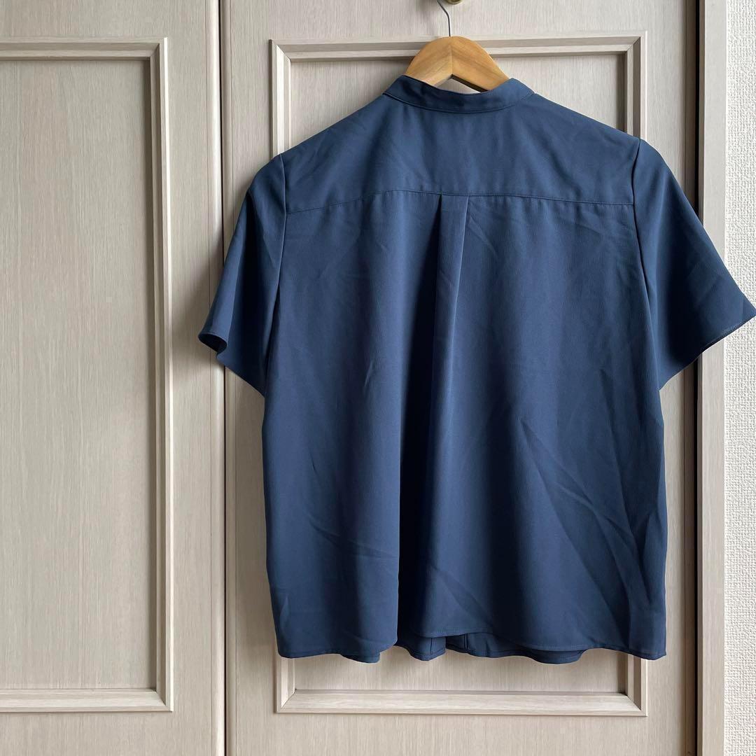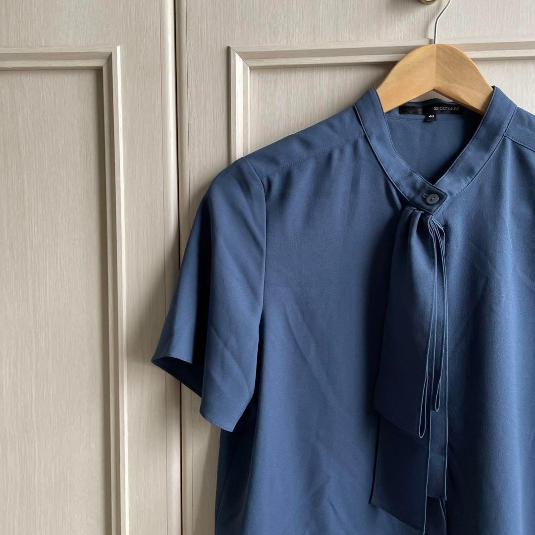 19 22OCTOBRE ブラウス シャツ ボウタイ 無地 半袖 ブルー