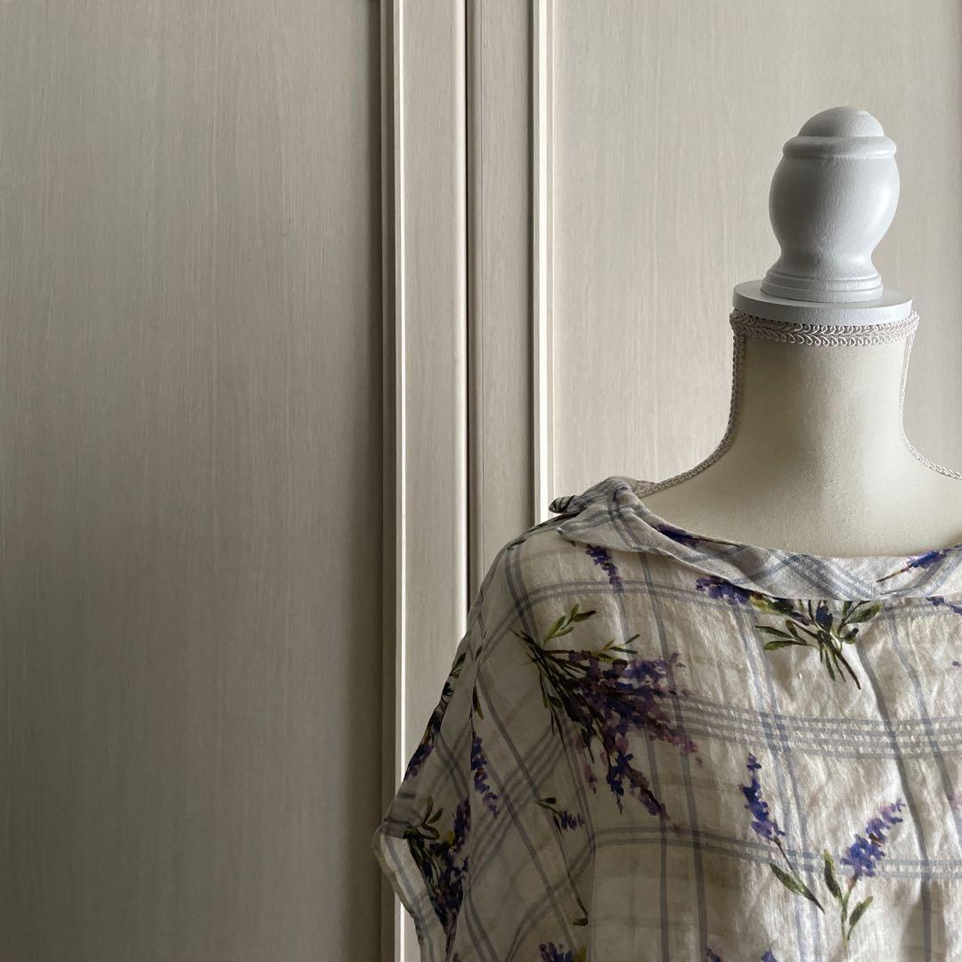 45 ビアズリー BEARDSLEY 花柄 麻 綿 花柄 ブラウス 半袖