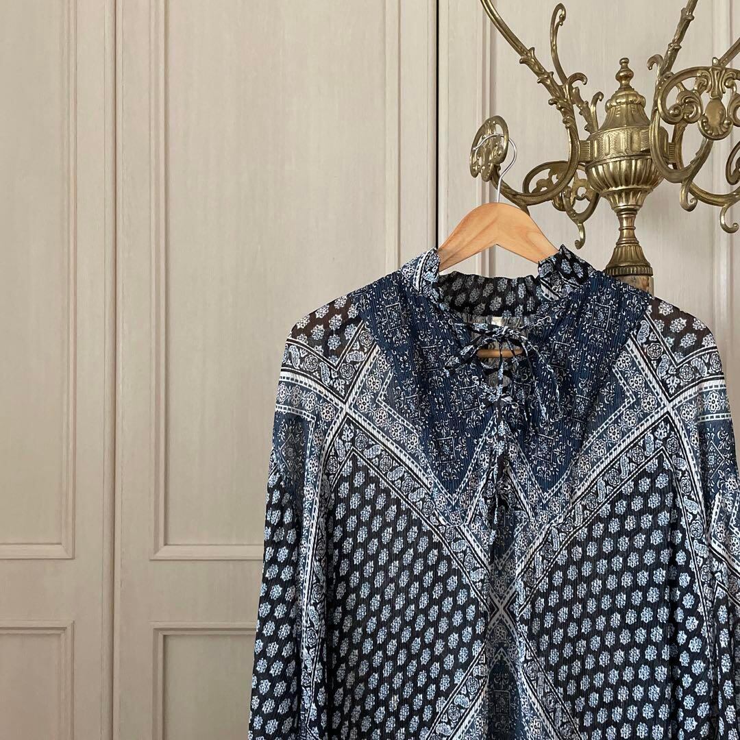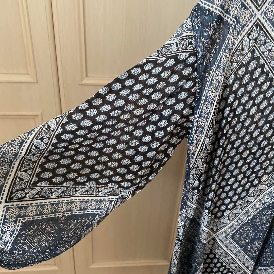 P アングリッド ungrid 花柄 ワンピース シャツ ロング 透け感 青