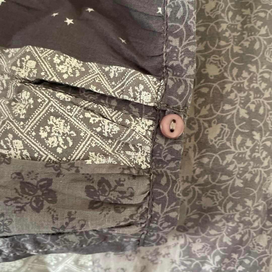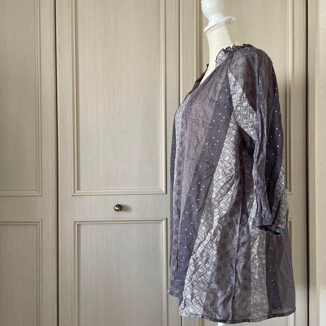 P 花柄 総柄 ブラウス シャツ トップス 七分袖 透け感 フリル Vネック