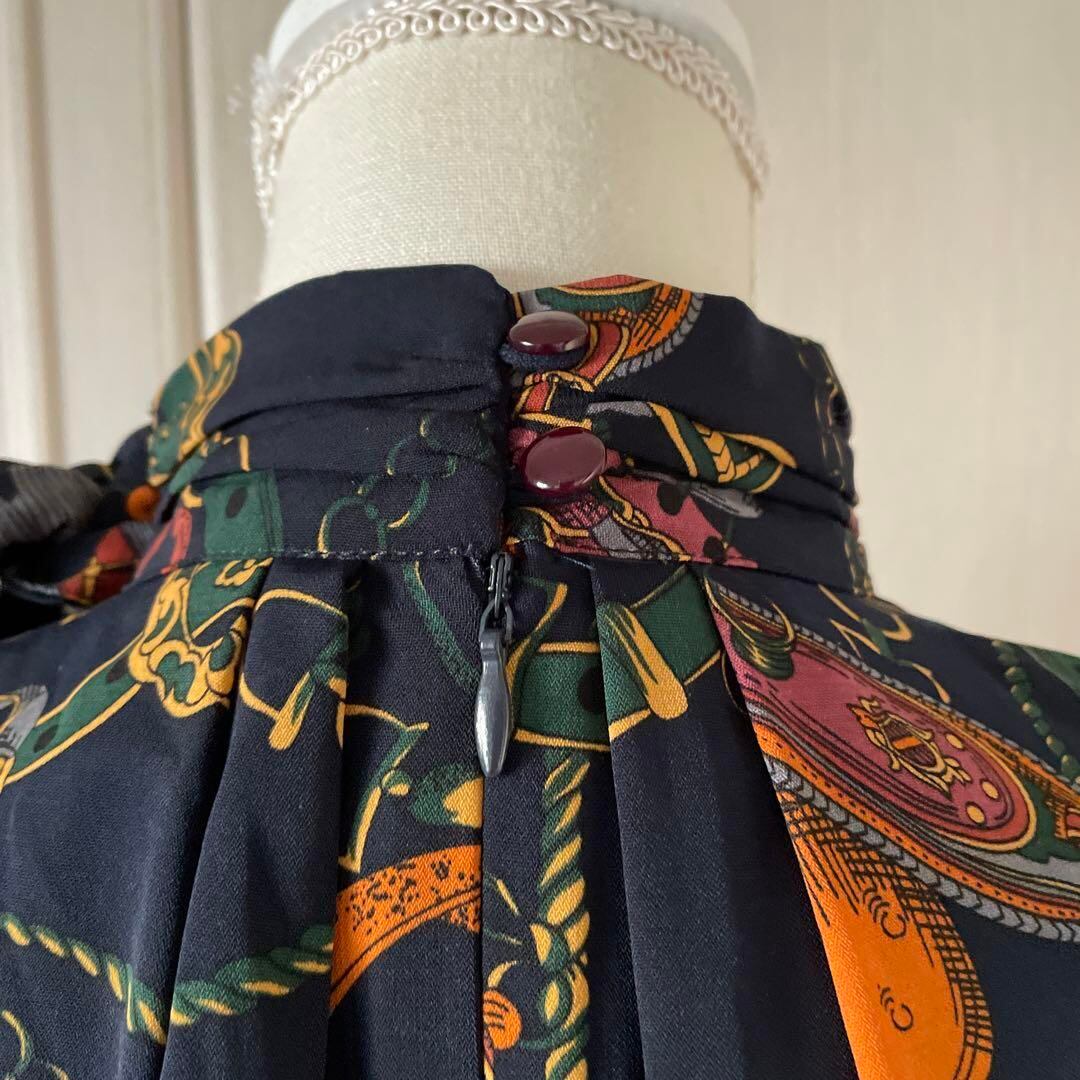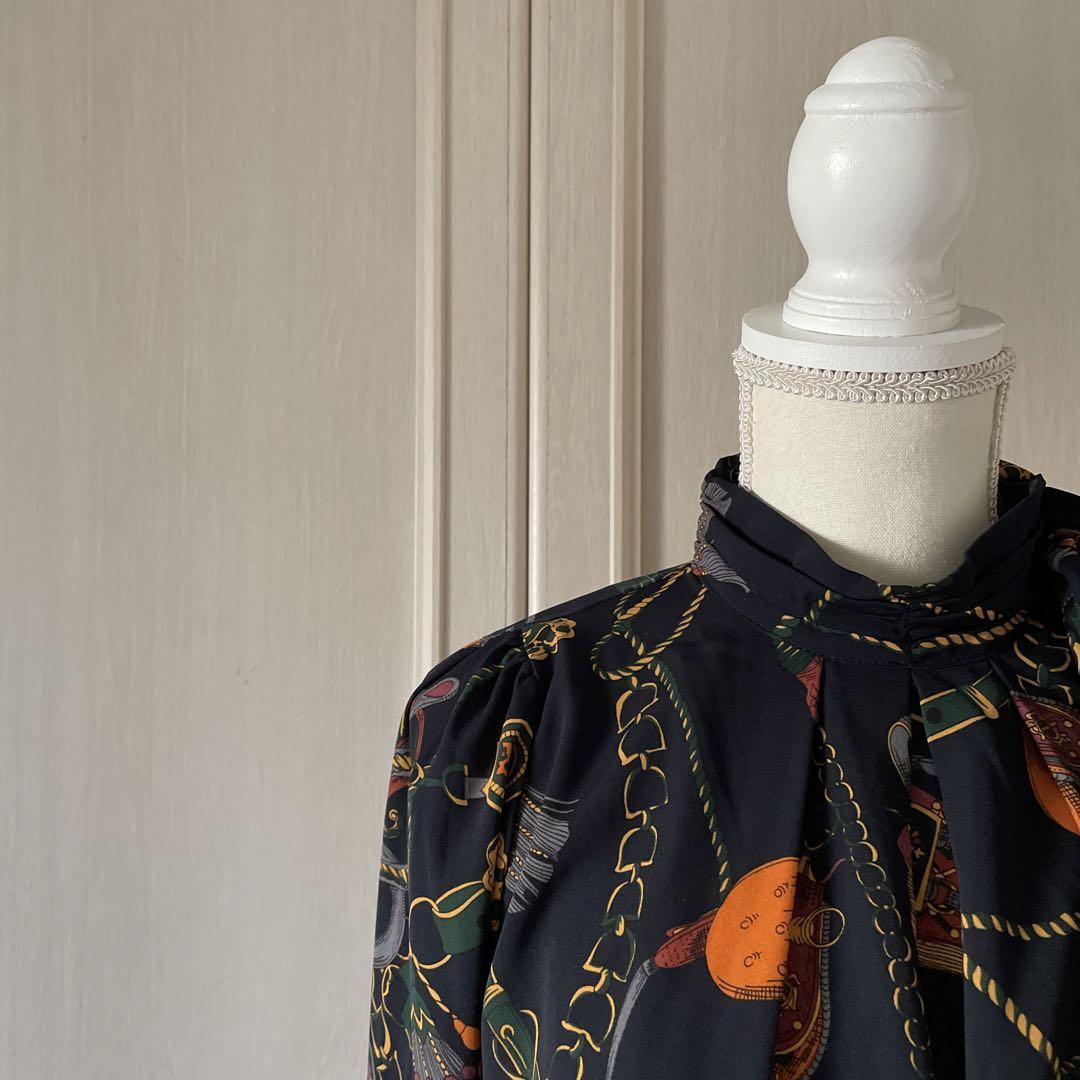 6 総柄 スカーフ ブラウス シャツ トップス 長袖 リボン 秋 冬