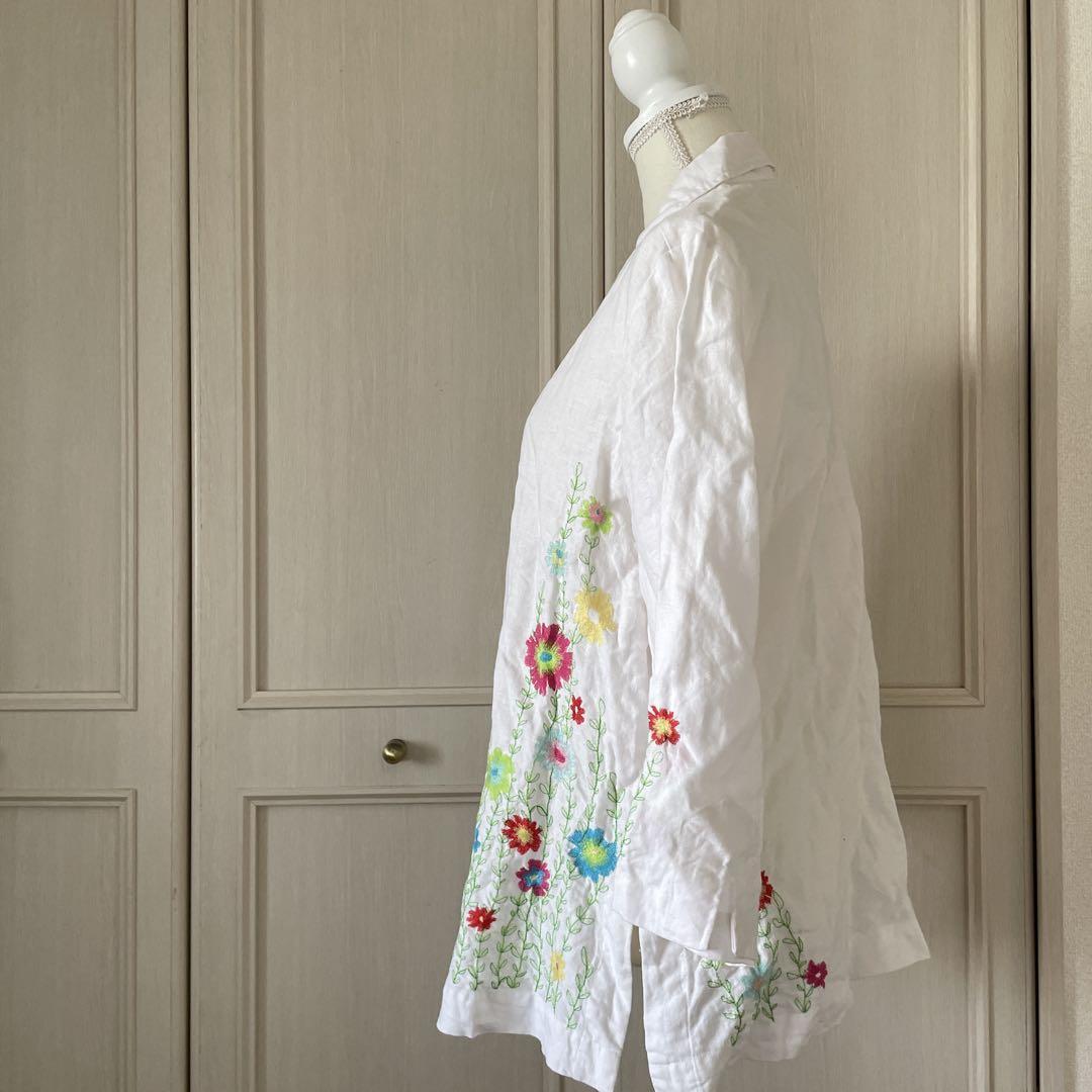 72 花柄 総柄 刺繍 リネン 麻 長袖 ブラウス シャツ トップス