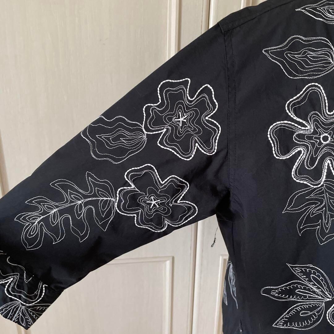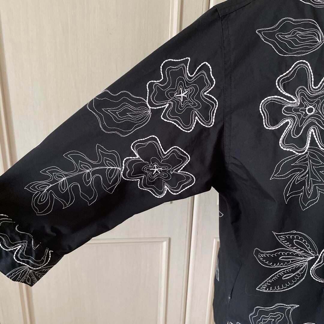 72 花柄 刺繍 ジャケット フラワー アウター 黒 薄手 シャツ ブラウス