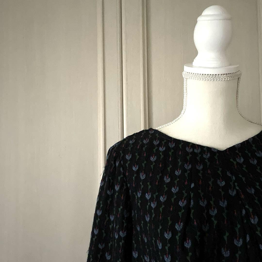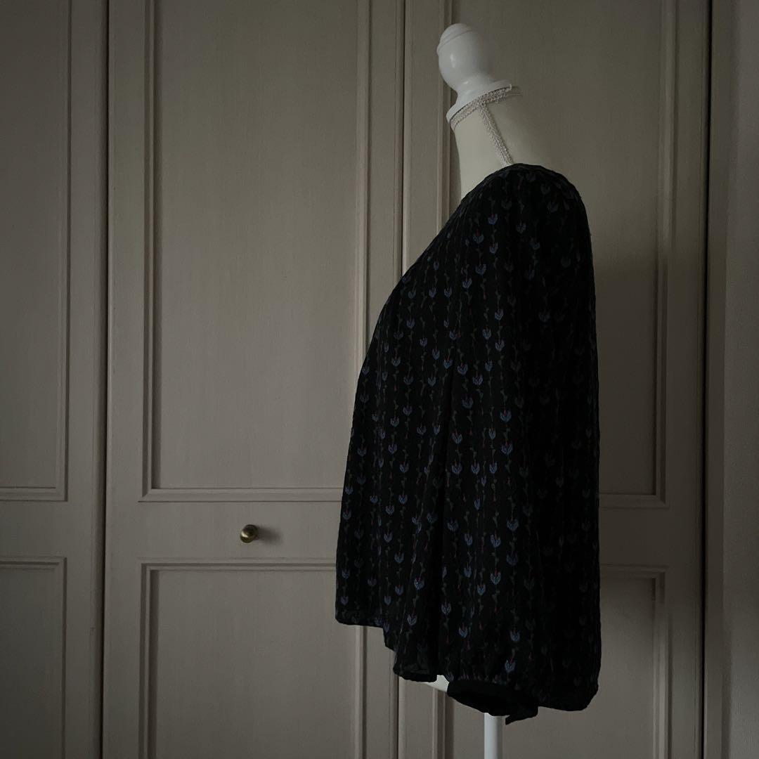 72 ホコモモラ Jocomomola 花柄 総柄 刺繍 ブラウス シャツ 青
