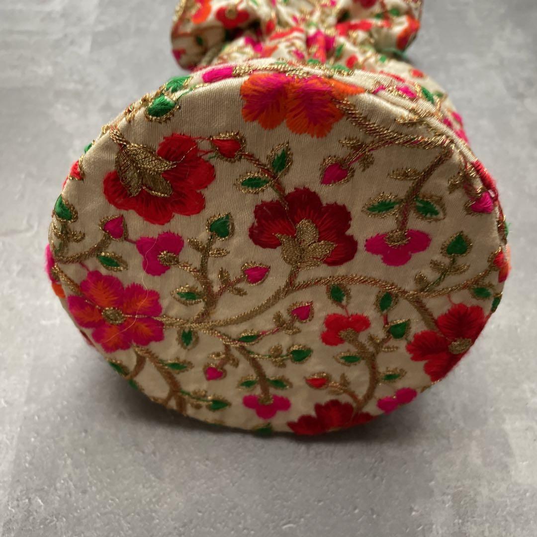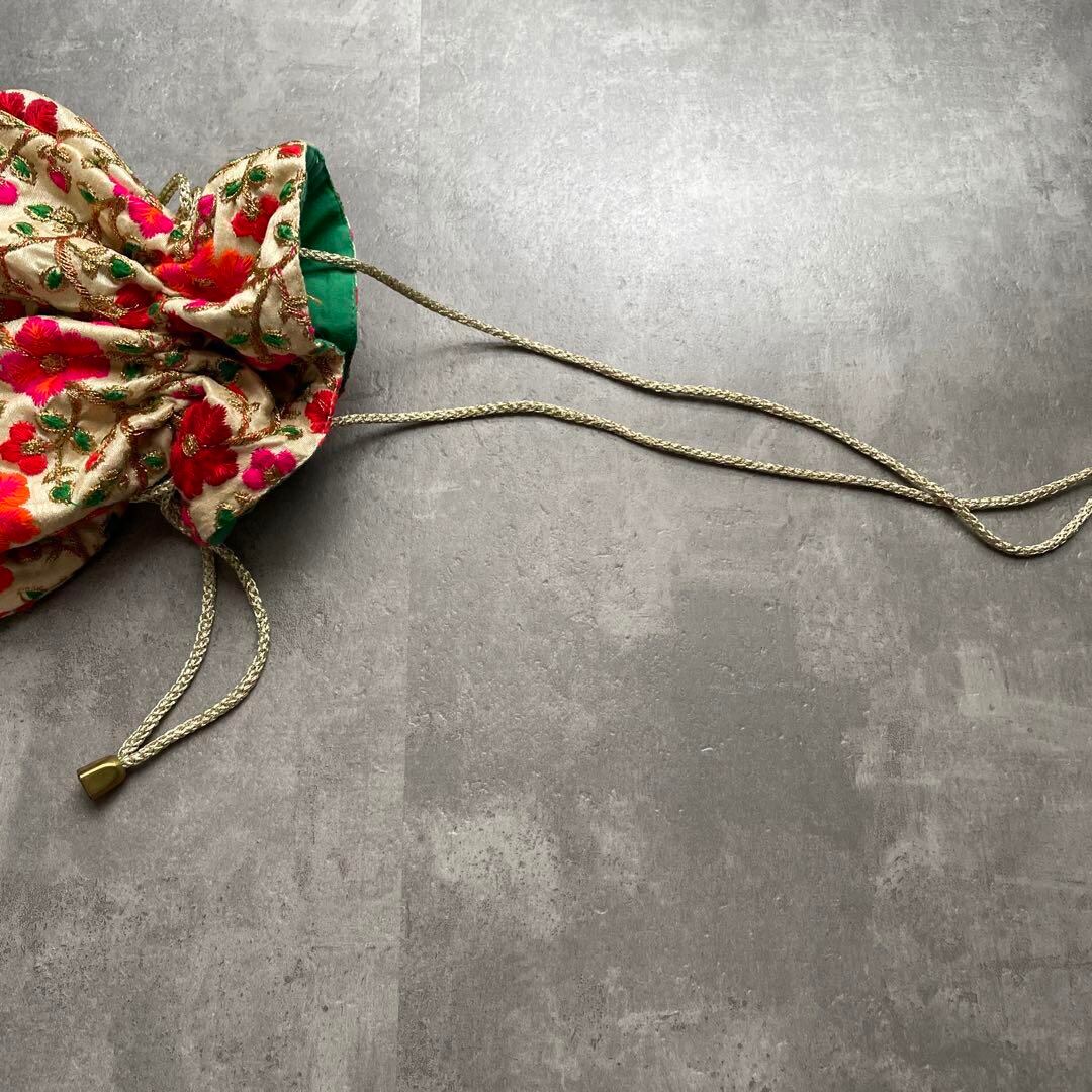 花柄 刺繍 巾着 ショルダー 斜めがけ バッグ カバン 鞄 かばん かわいい