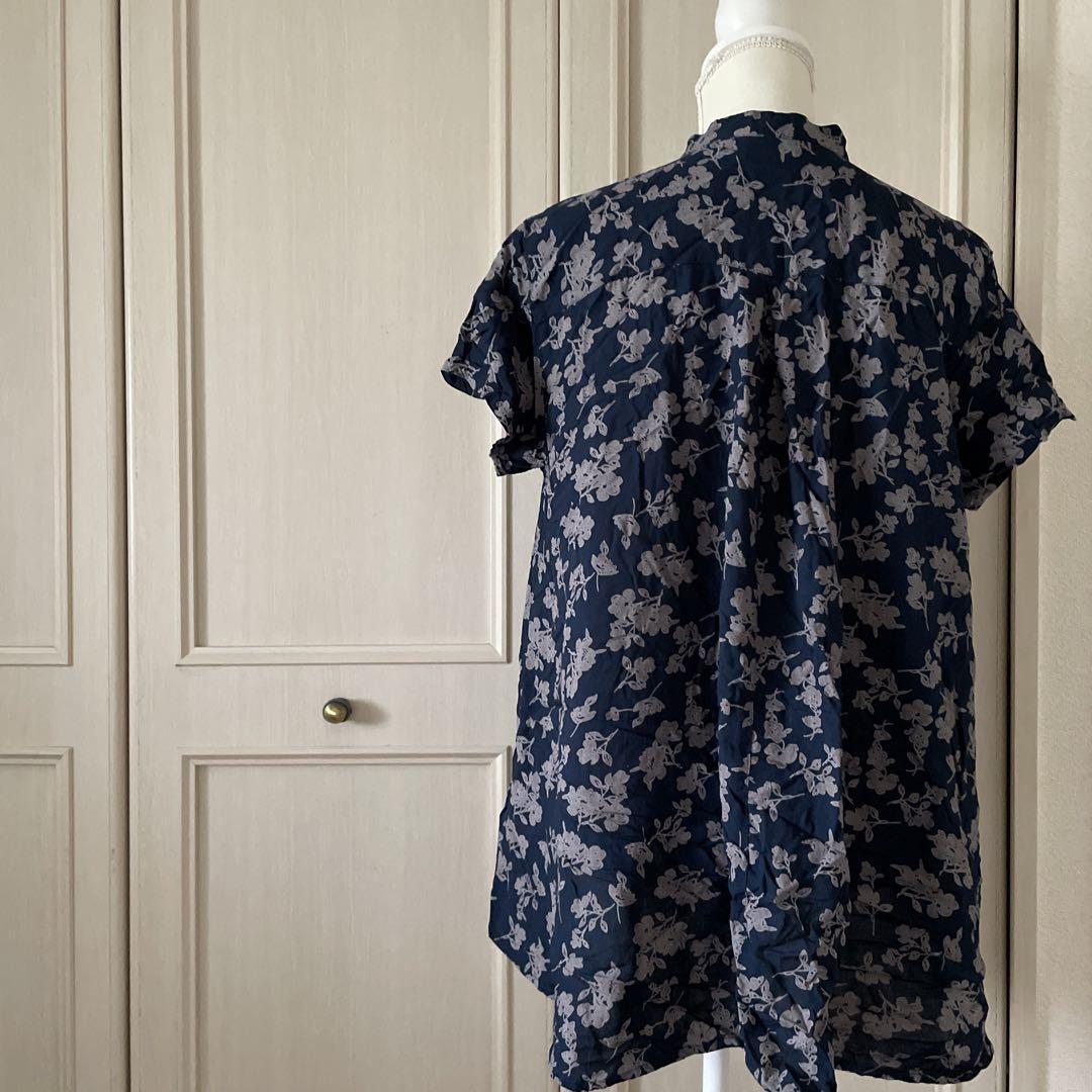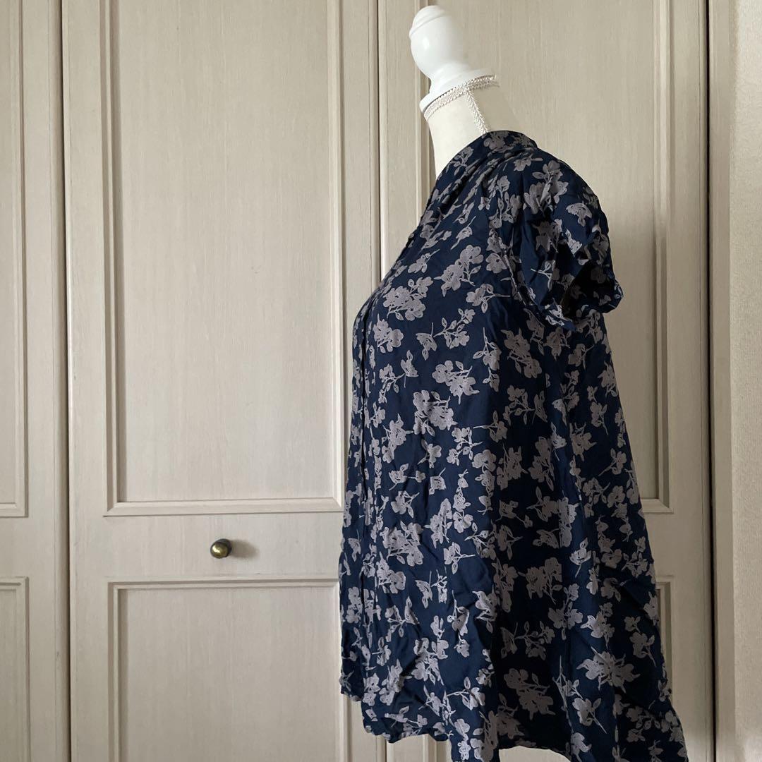 77 花柄 ブラウス シャツ 半袖 ナチュラル コンフォート 半袖 L 青