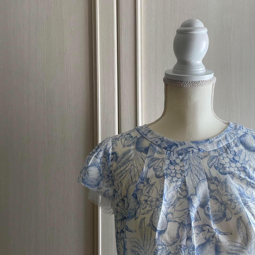51 innowave イノウェーブ 花柄 フラワー ブラウス シャツ 青 白