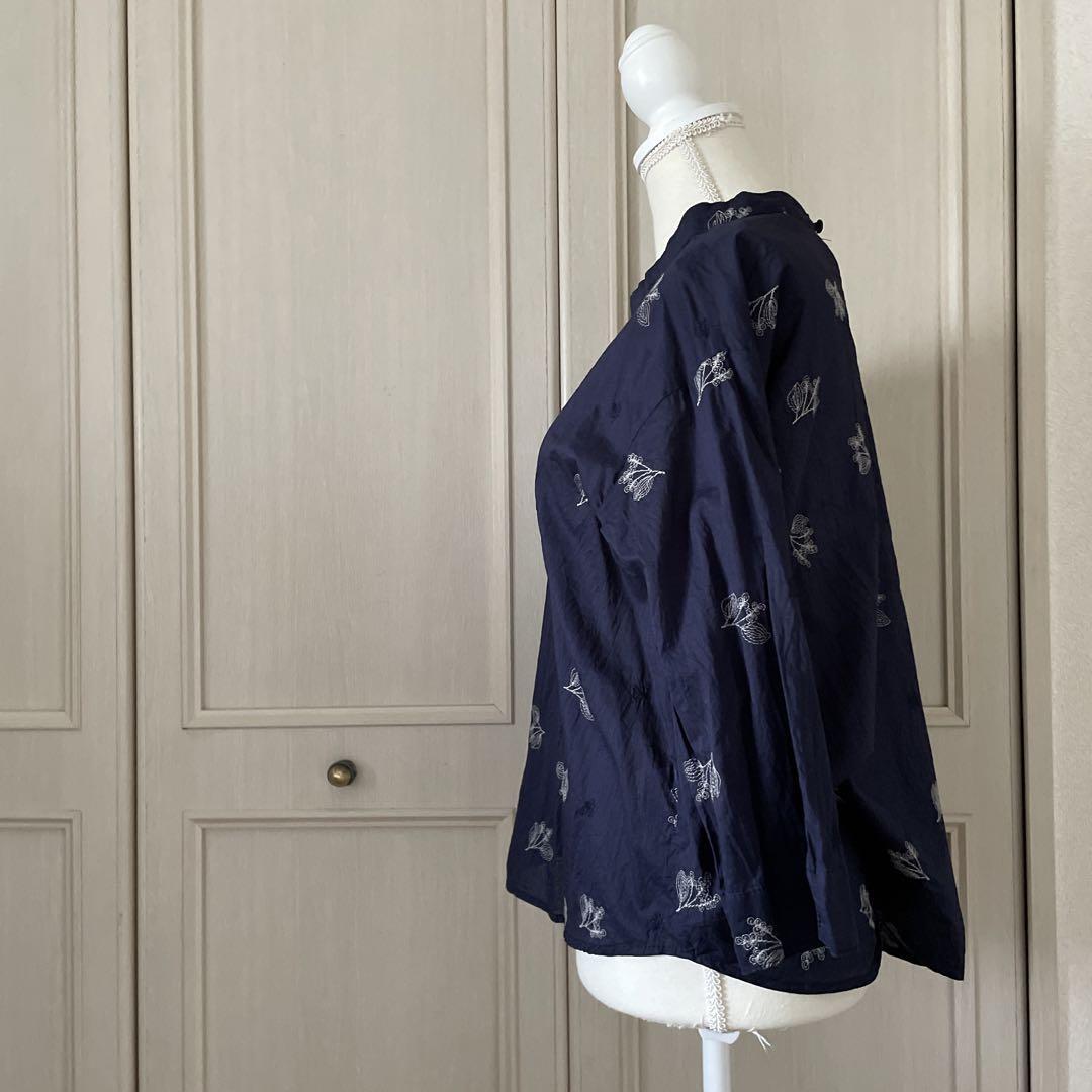 13 花柄 刺繍 総柄 ブラウス シャツ トップス ナチュラル ブルー 青 白