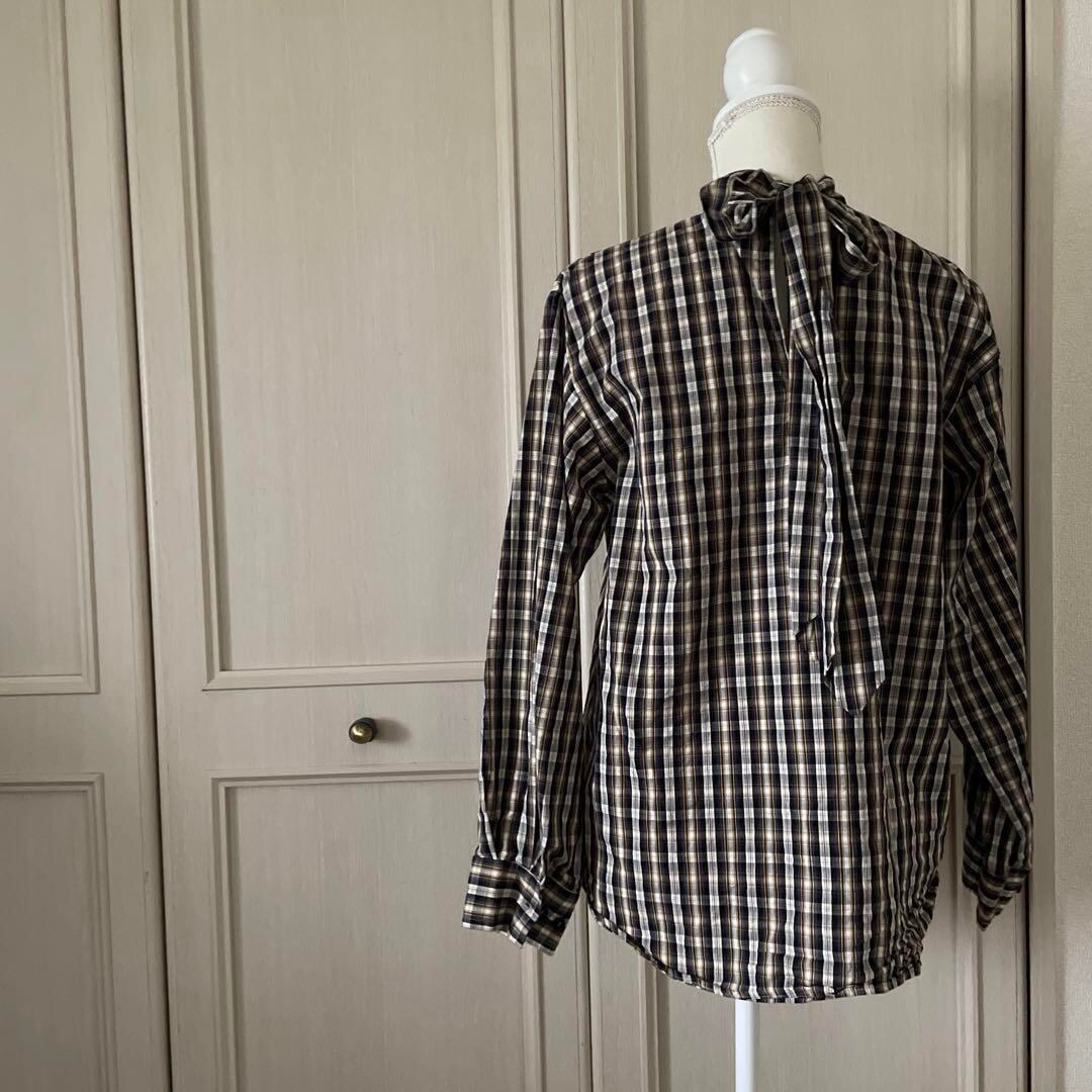 55 ZARA ザラ BASIC ベーシック チェック ブラウス リボン シャツ