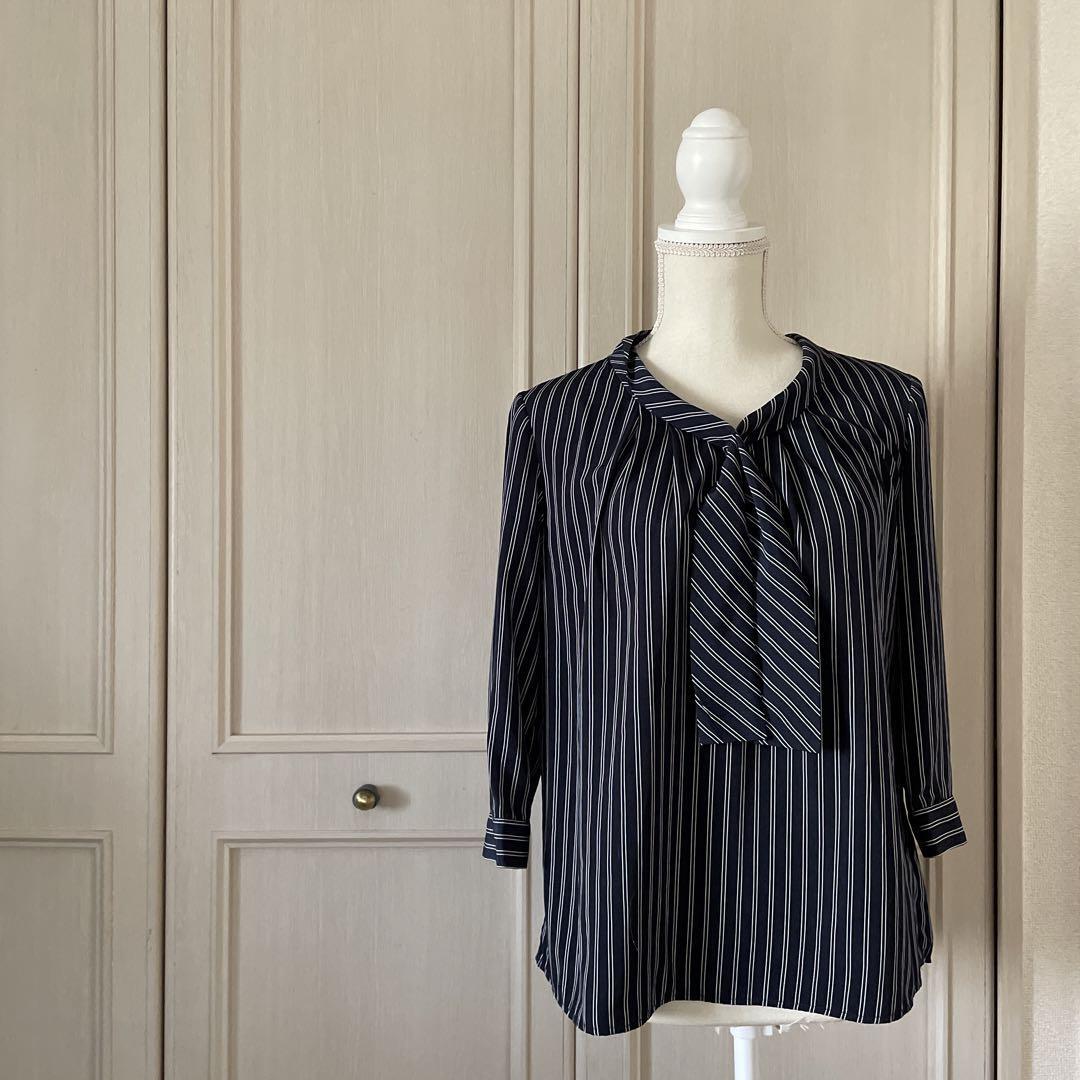 ボウタイストライプ ブラウス シャツ トップス 長袖 オフィスカジュアル