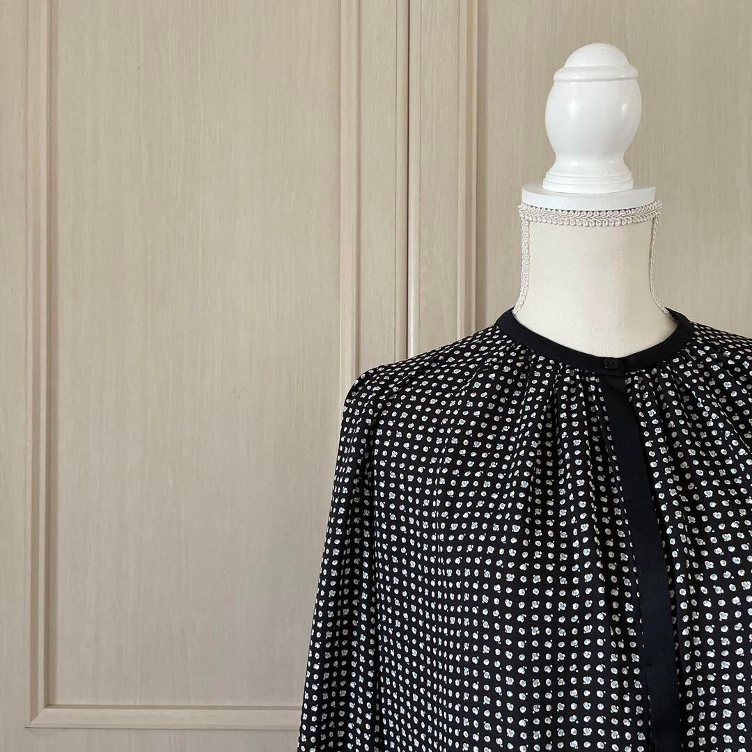 16 アナイ ANAYI 総柄 ブラウス シャツ トップス 水玉 長袖 黒 M