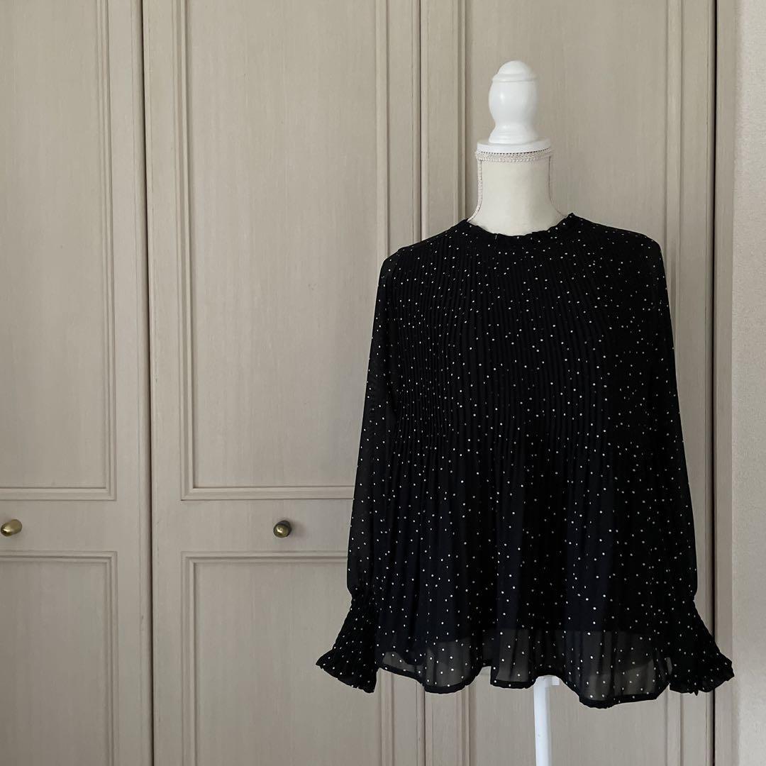 1 ヴィス ビス vis ドット 水玉 ブラウス シャツ トップス プリーツ 黒