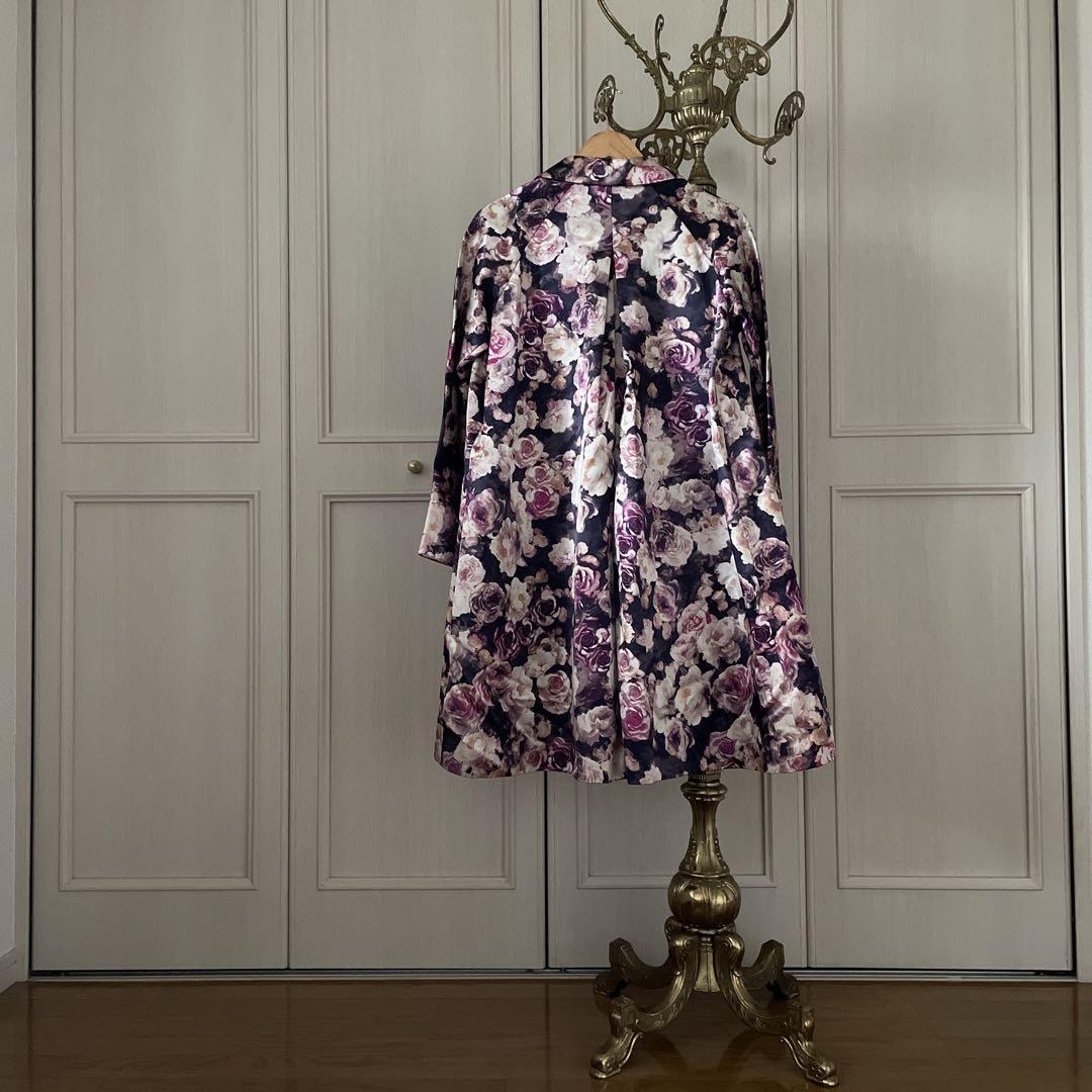 I ルールロジェット 花柄 ロング コート サテン ピンク かわいい 可愛い