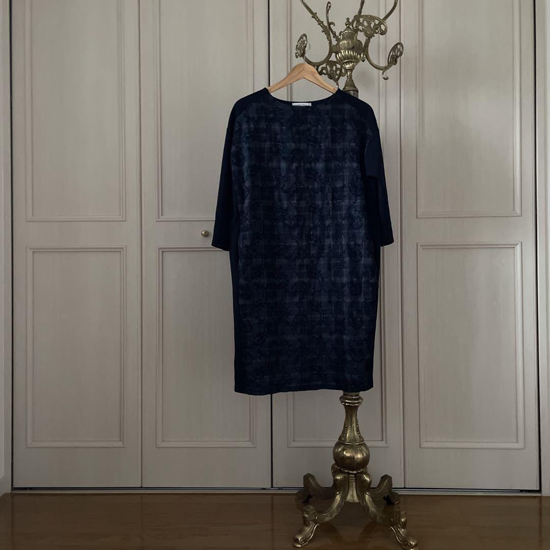 I ビアズリー BEARDSLEY 花柄 刺繍 ワンピース チェック