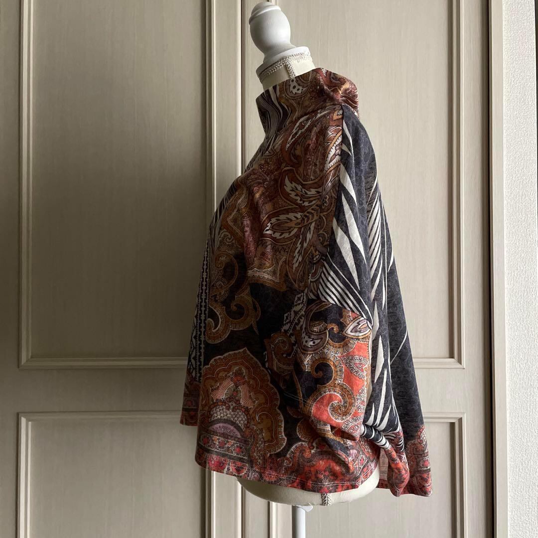 K 総柄 ハイネック ニット おしゃれ インポート 上品 シャツ ブラウス