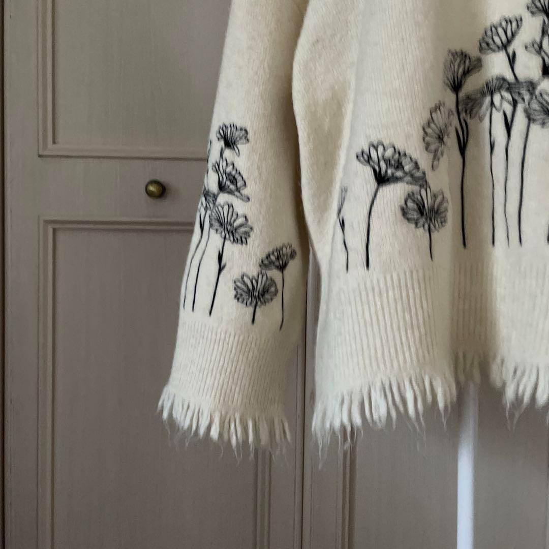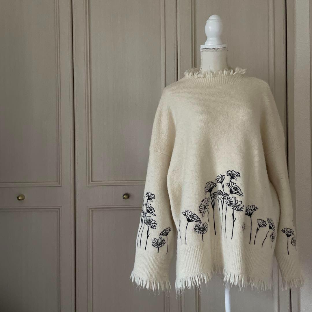 62 ZARA ザラ BASIC 刺繍 花柄 総柄 ニット セーター 白