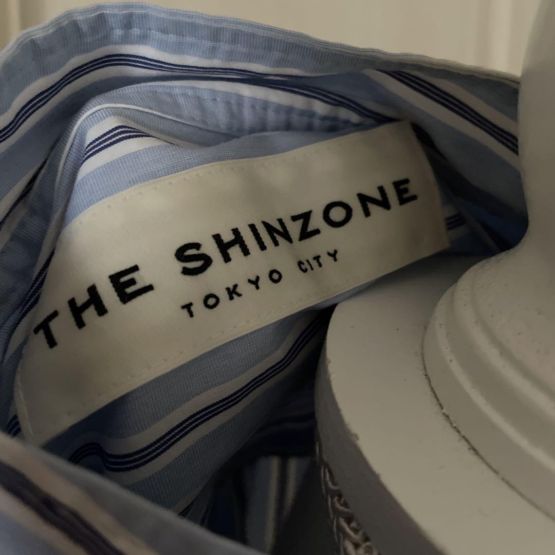 A THE SINZONE シンゾーン ストライプ 長袖 リボン ブラウス 青