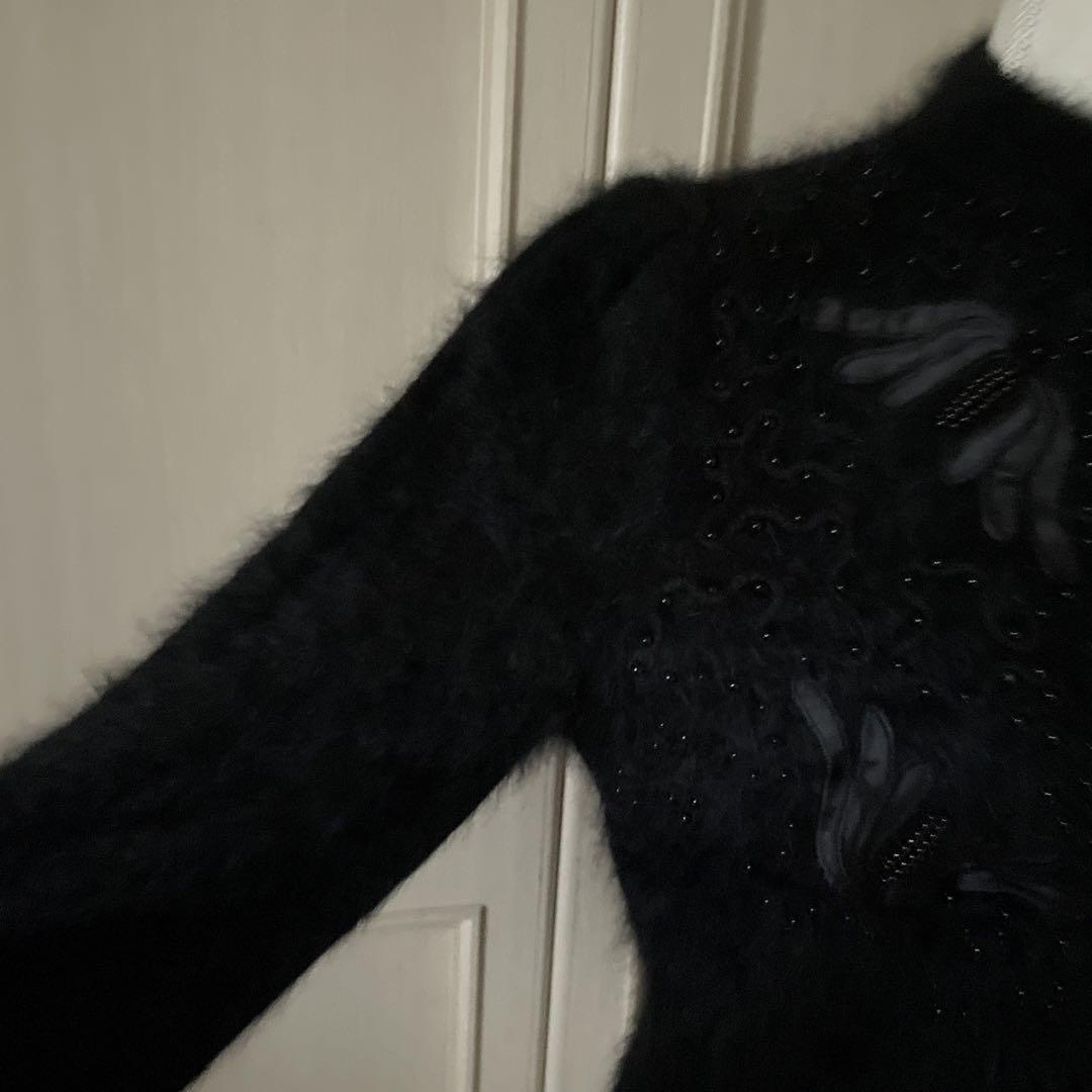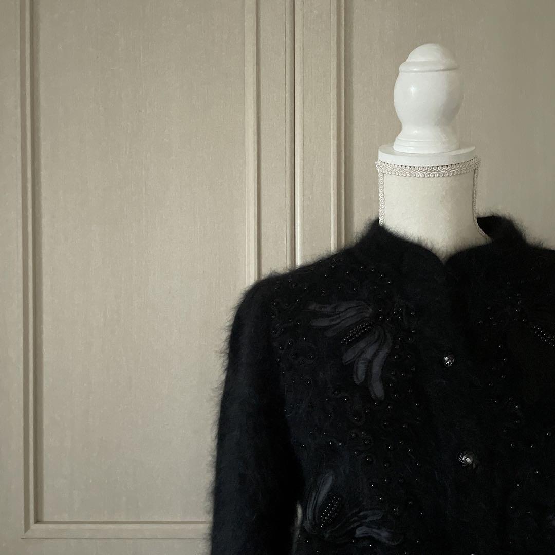 24 刺繍 花柄 ニット セーター カーディガン レトロ 可愛い ふわふわ 黒