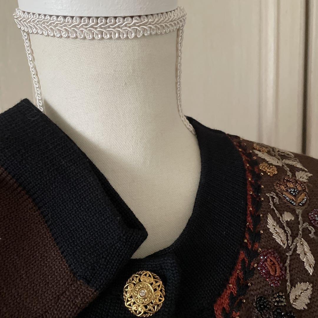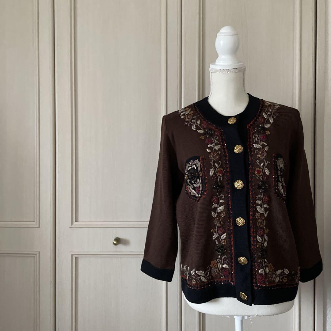 I 刺繍 ビーズ カーディガン ニット セーター レトロ グリモワール 花柄