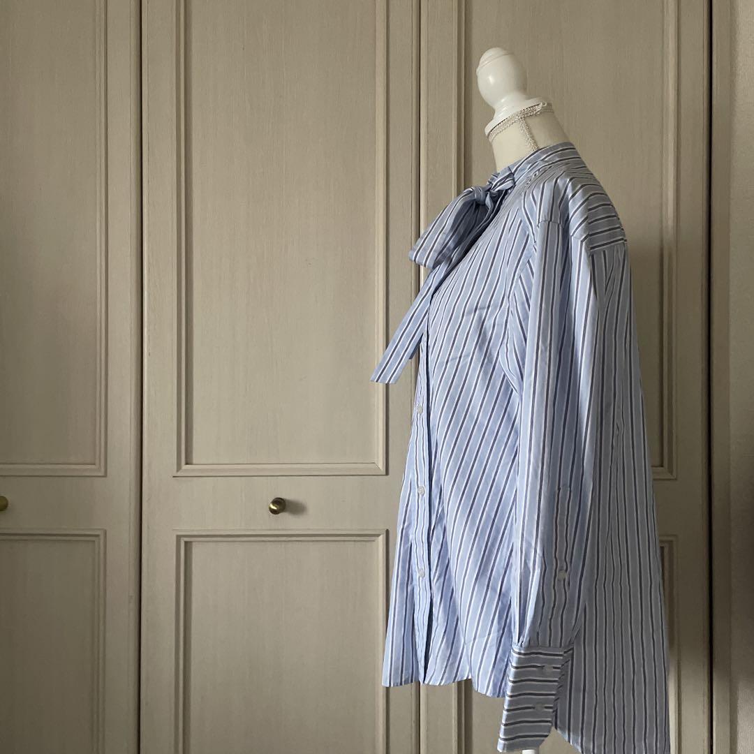 A THE SINZONE シンゾーン ストライプ 長袖 リボン ブラウス 青