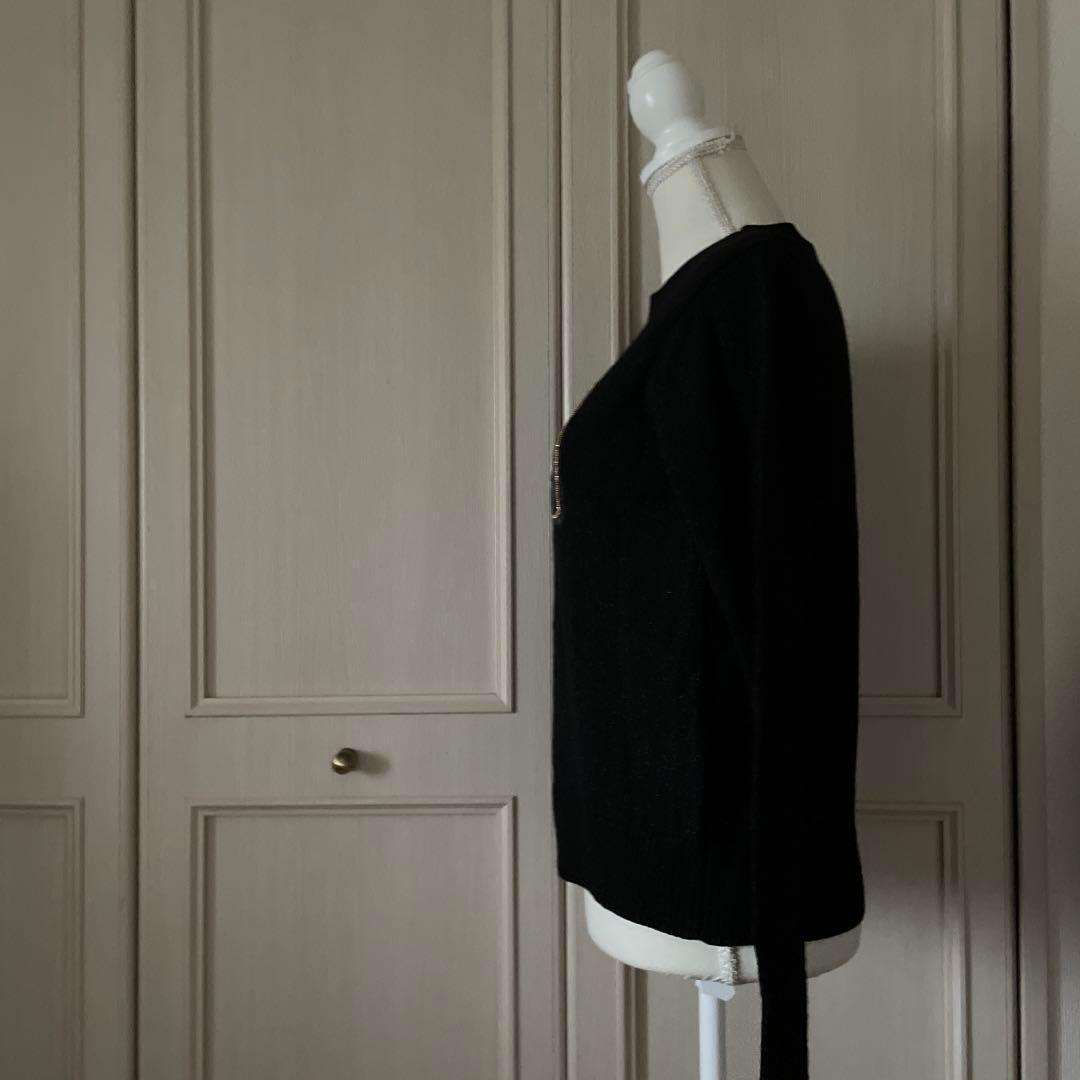 14 MUVEIL ミュベール 刺繍 総柄 ニット 猫 セーター 長袖 グレー