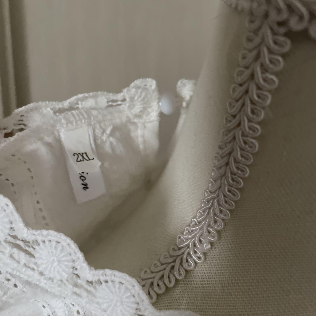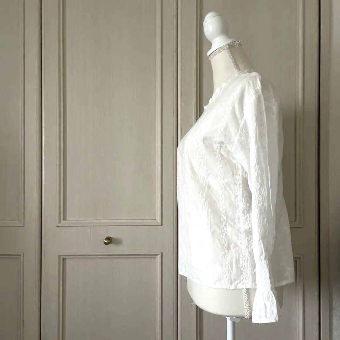 A 刺繍 花柄 総柄 ブラウス シャツ トップス レース 長袖 大きいサイズ 白