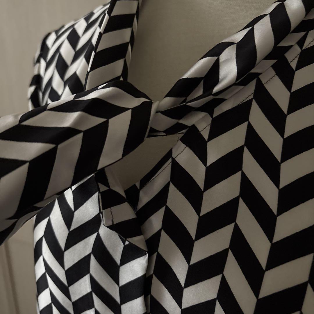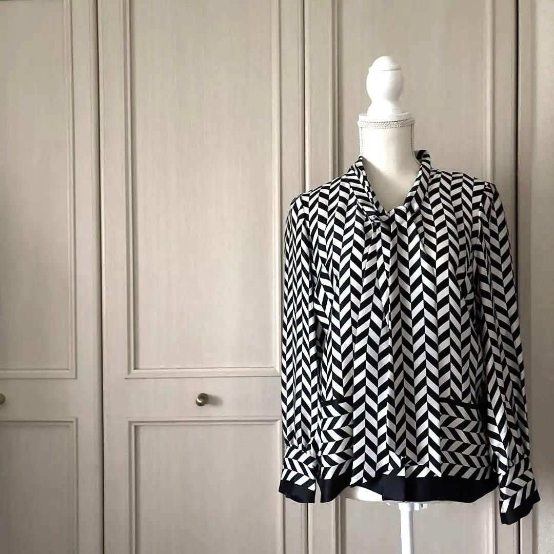 U agnisb アニエスベー 38 M 総柄 ボウタイ ブラウス シャツ