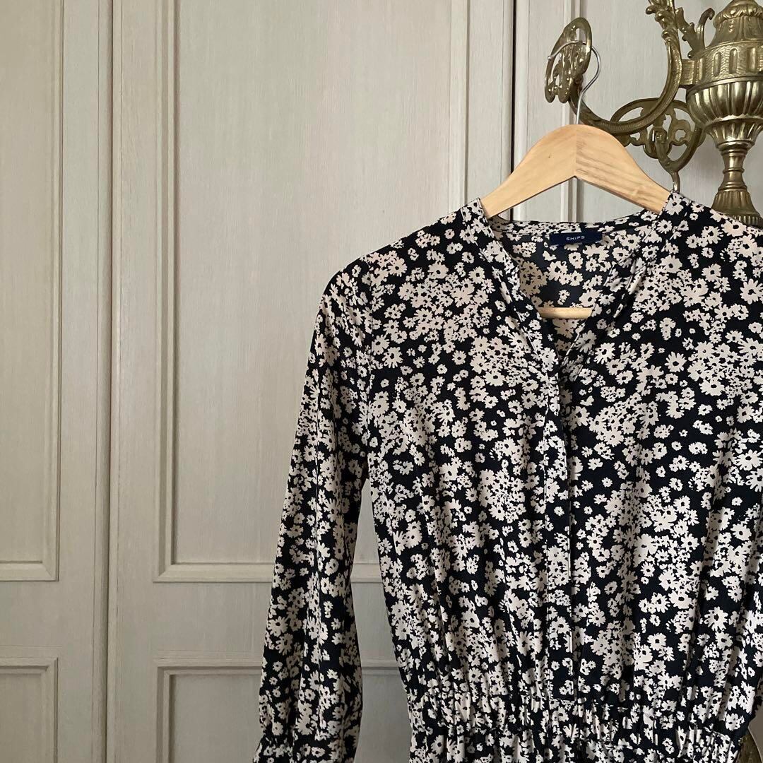 M SHIPS シップス 花柄 ワンピース シャツ 長袖 ロング ロング