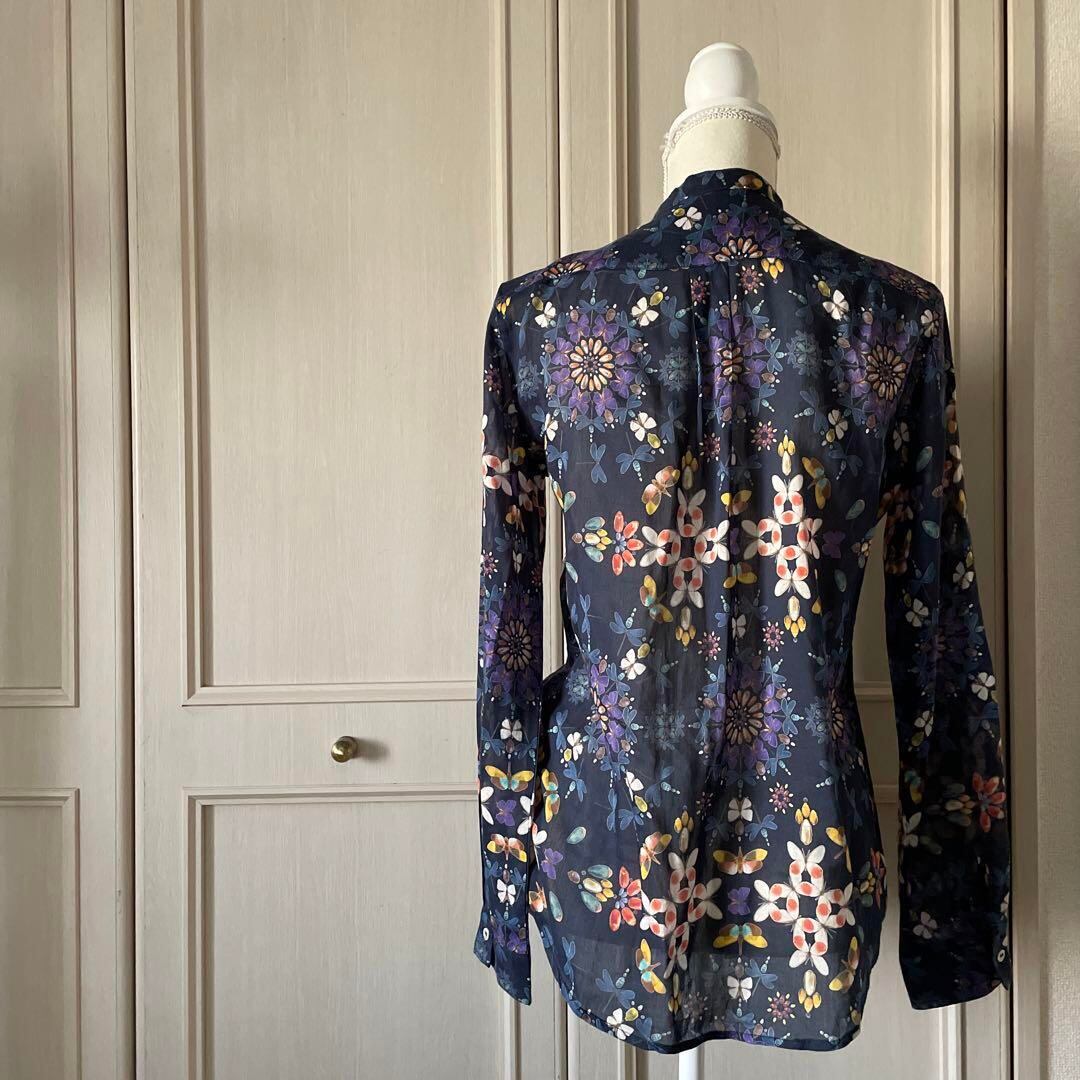 25 forteforte フォルテフォルテ 花柄 総柄 ブラウス 青 長袖