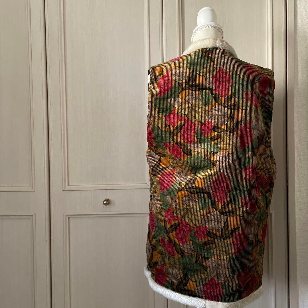 花柄 ボア ジレ ベスト ベロア ロング かわいい レトロ 昭和 個性派